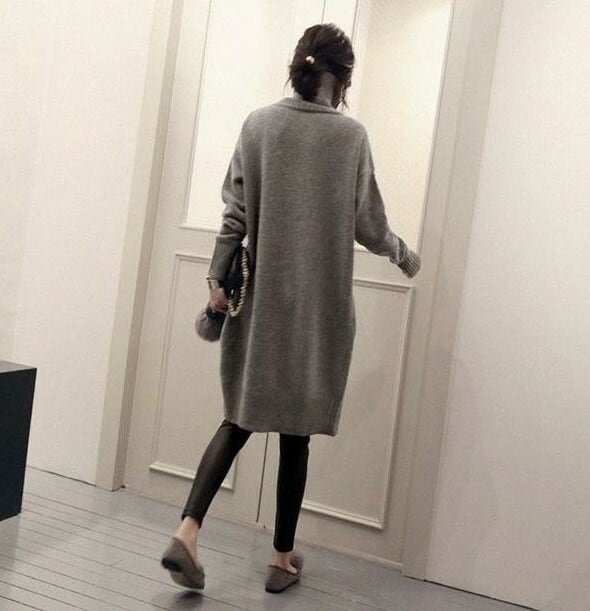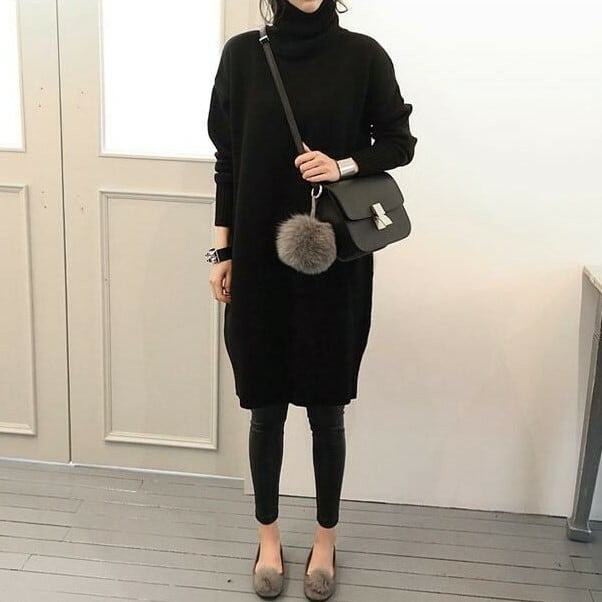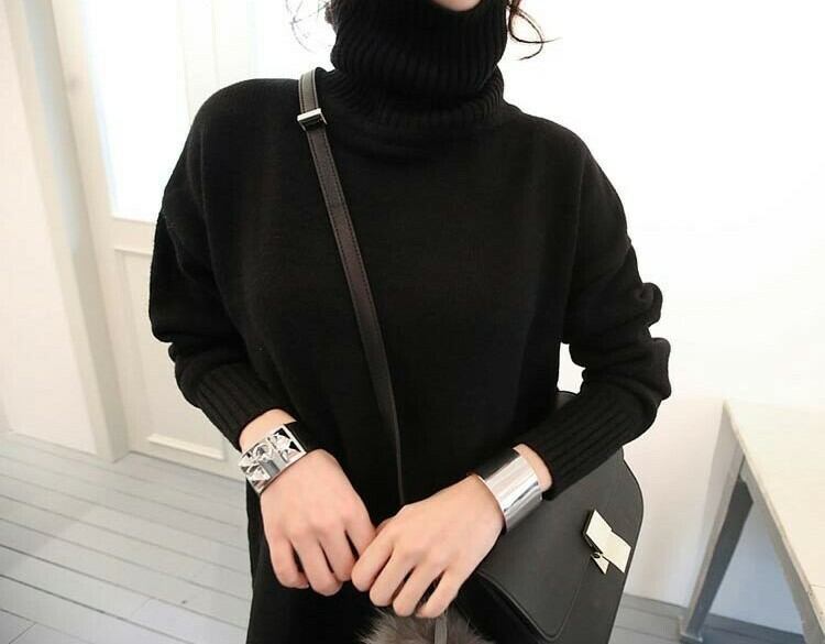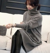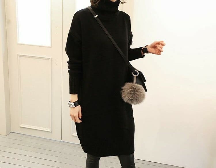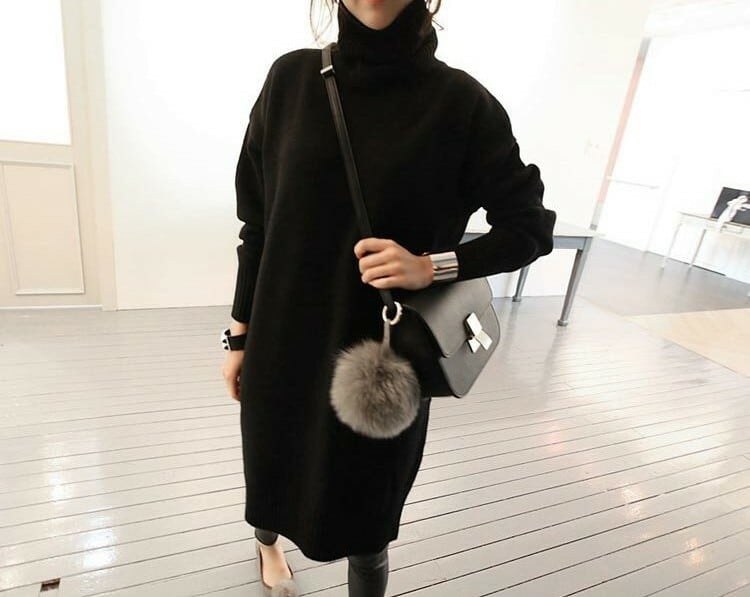 全2色 ニットドレス ニットワンピース ブラック グレー タートルネック 長袖 ドロップショルダー 大人カジュアル 大きいサイズ 秋 冬 韓国 オルチャン ミニ丈