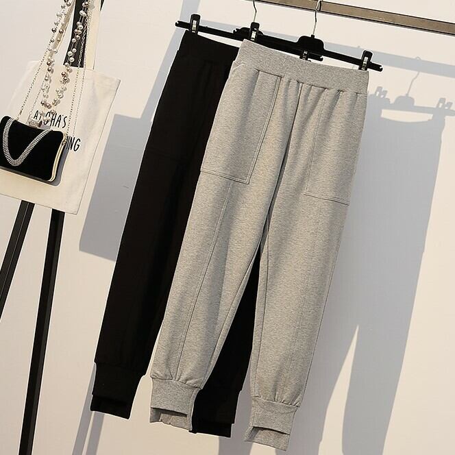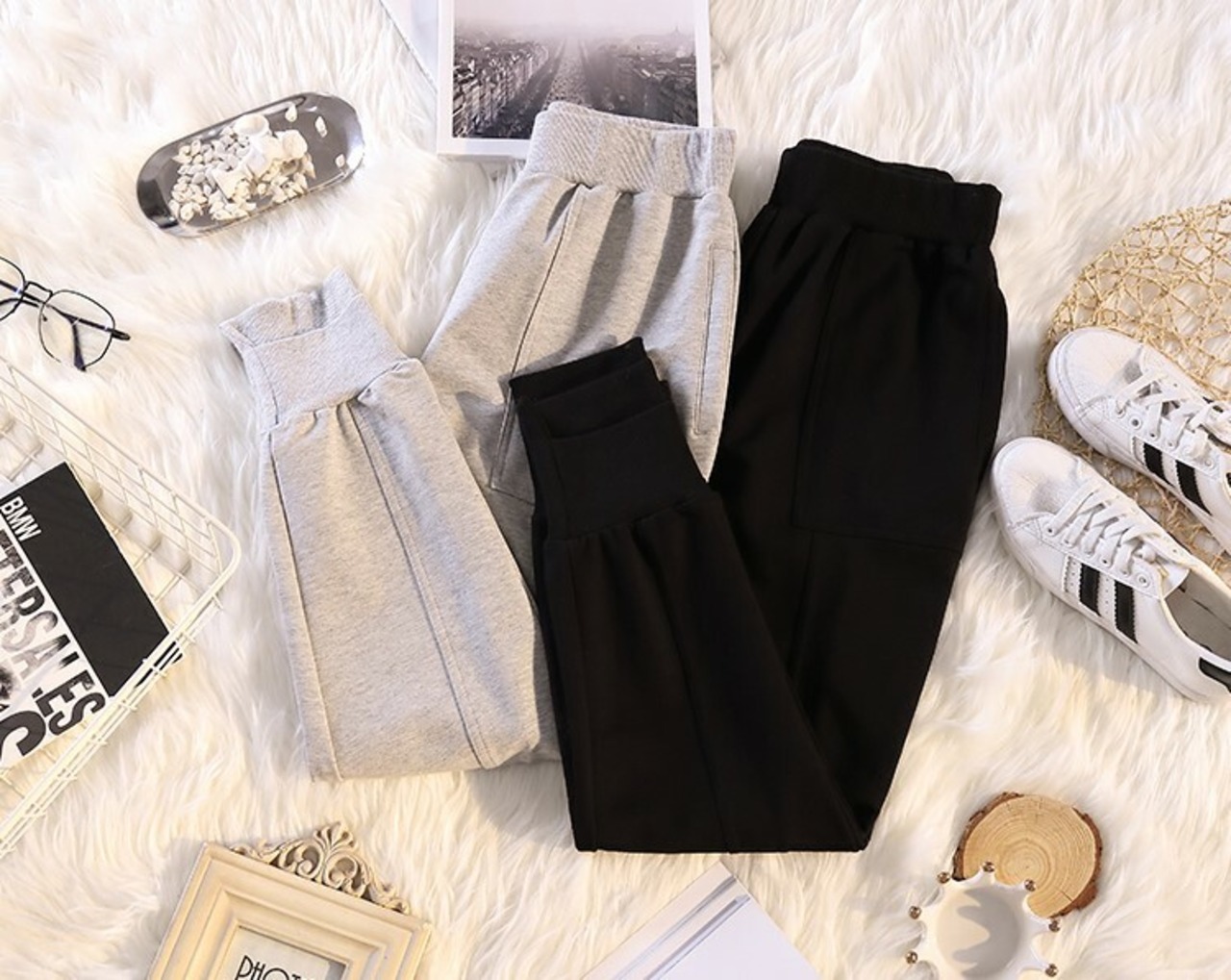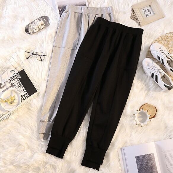 全2色 スウェットパンツ ジョガーパンツ ブラック グレー 大きいサイズ ウエストゴム 大人カジュアル スポーティ 休日 旅行 韓国 オルチャン