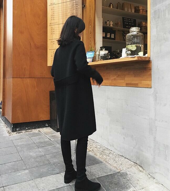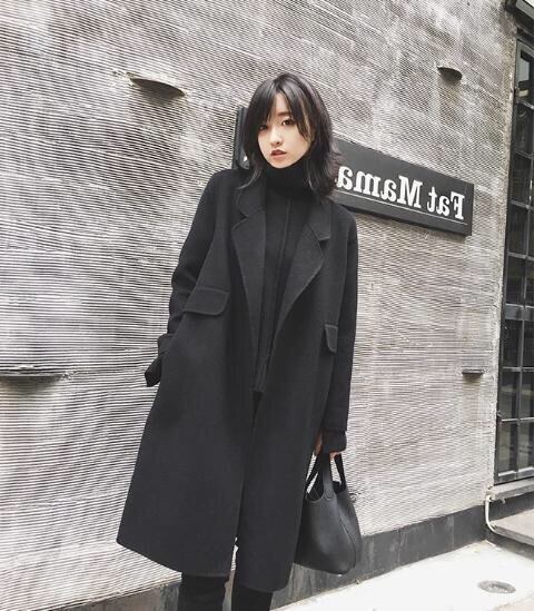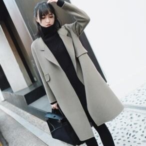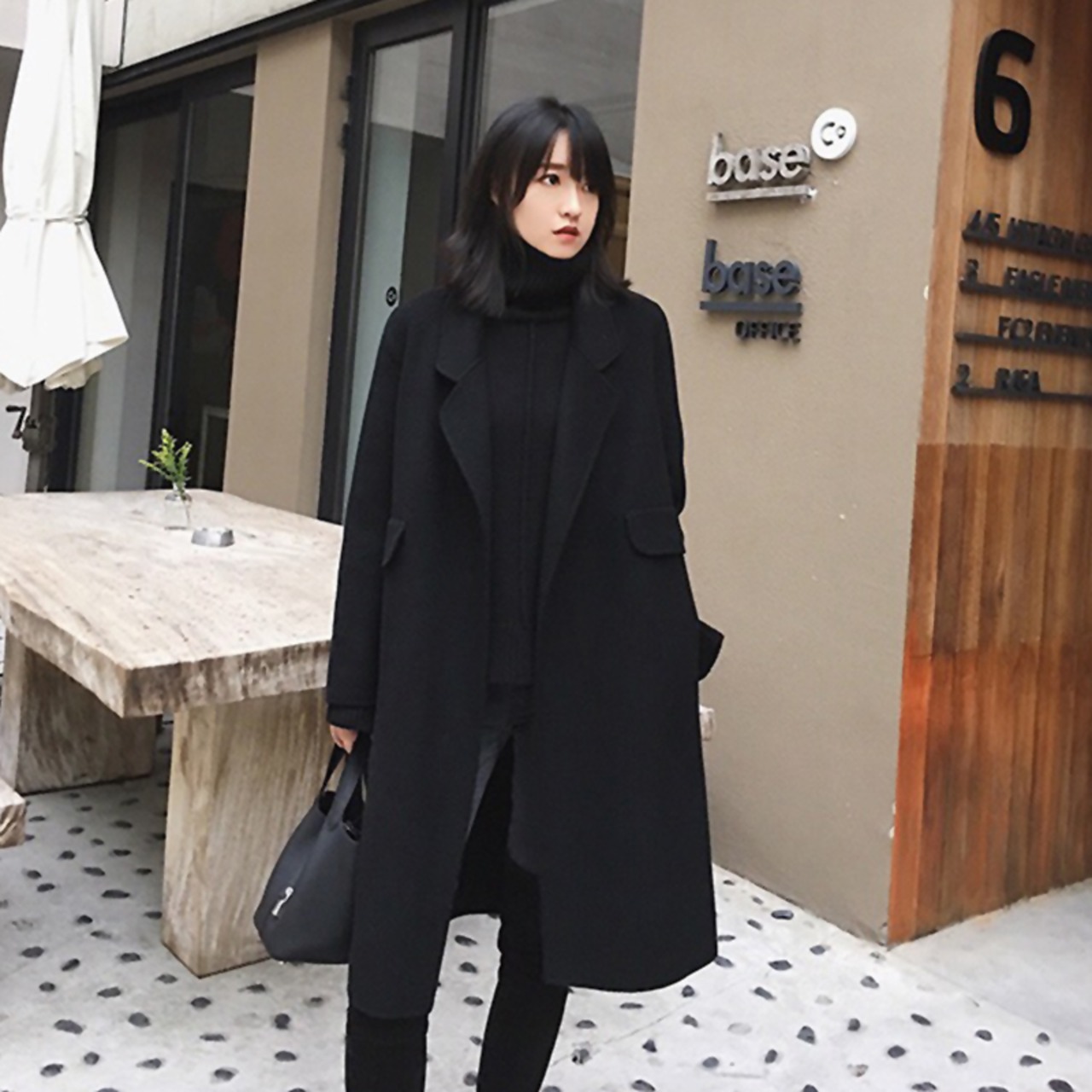 全2色 ウールコート ミドル丈 テーラードカラー グレー ブラック シンプル ベーシック 通勤 上品 エレガント 韓国 オルチャン
