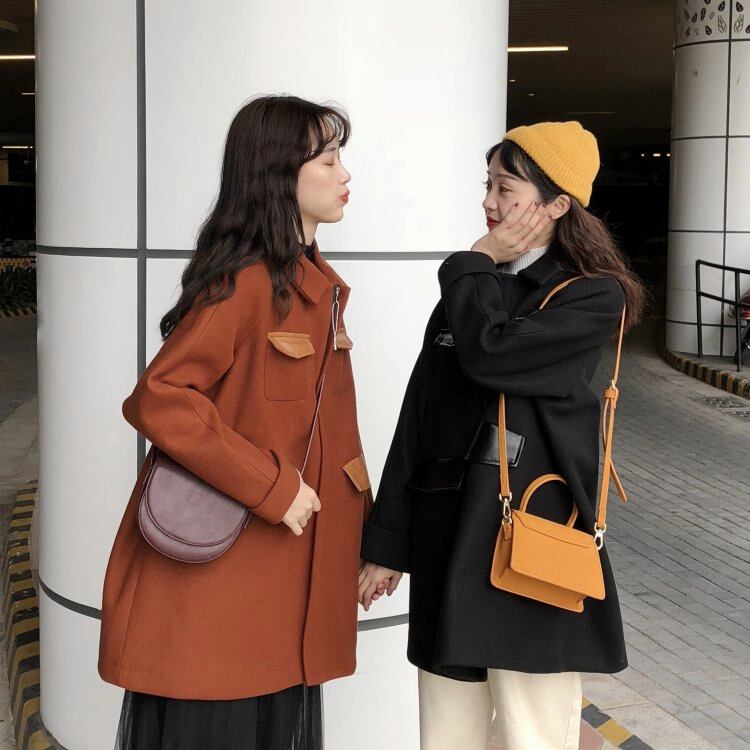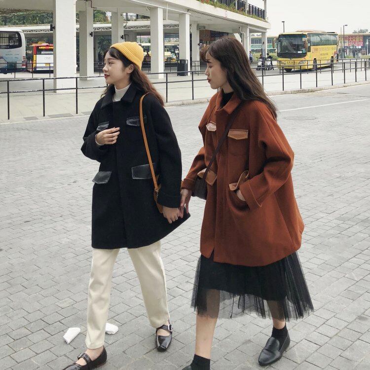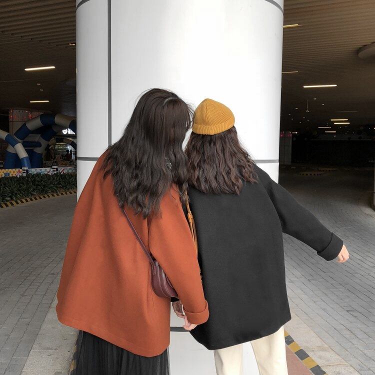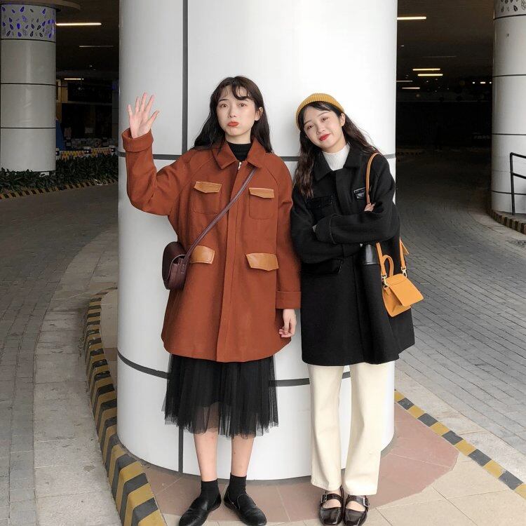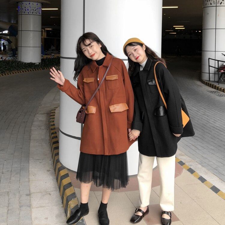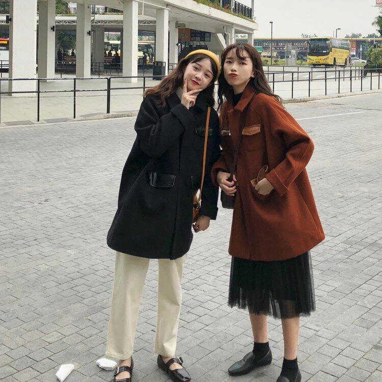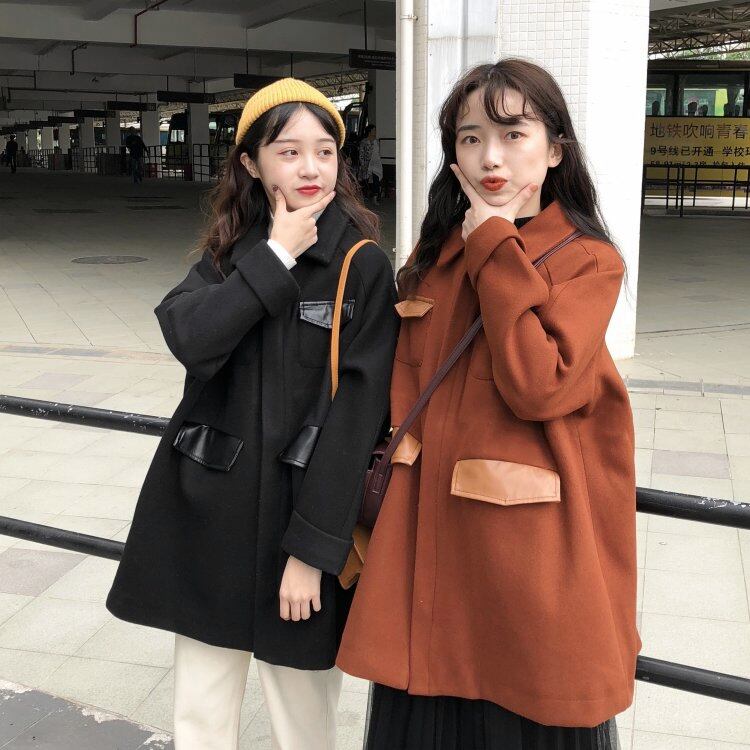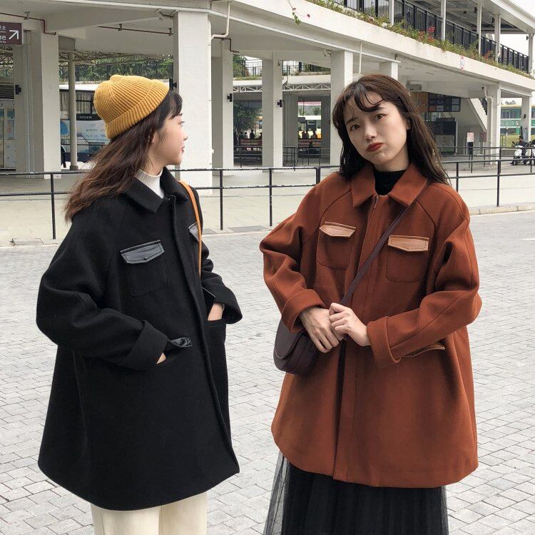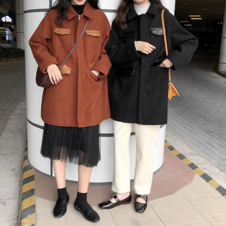 全2色 ジャケット コート ウールコート ミドル丈 長袖 ラグランスリーブ 厚地 羽織 アウター 大人カジュアル キャメル ブラック 休日 デイリー 通学 学生 韓国 オルチャン
