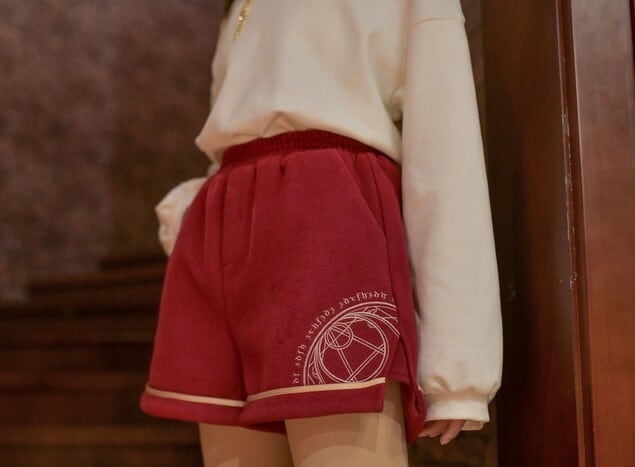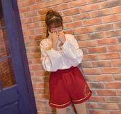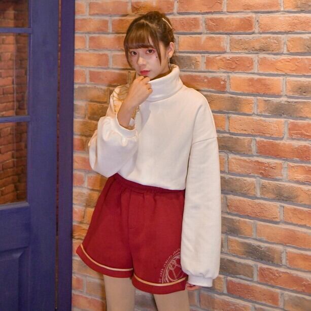 セットアップ プルオーバー ショートパンツ ツーピース ハイネック 長袖 秋 冬 ホワイト レッド 学生 韓国 オルチャン