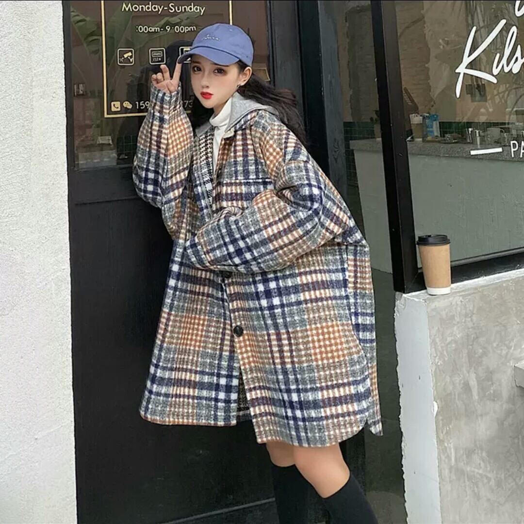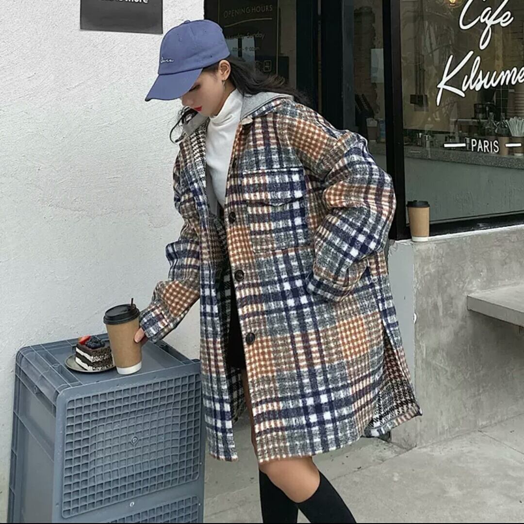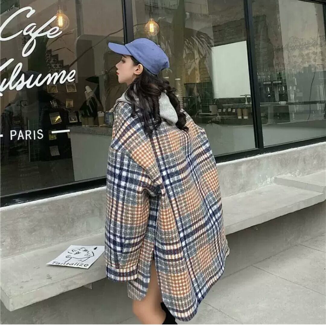 チェック柄 フードつき コート アウター オーバーサイズ 大きめ ゆったり フリーサイズ お出かけ お買い物 デート 女子会 秋冬 春 通学 通勤