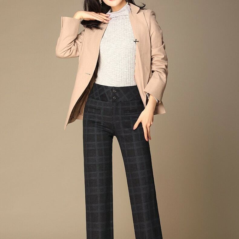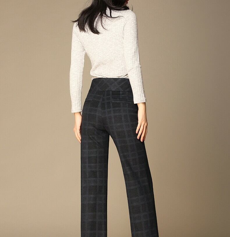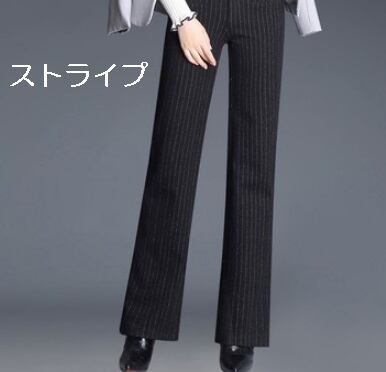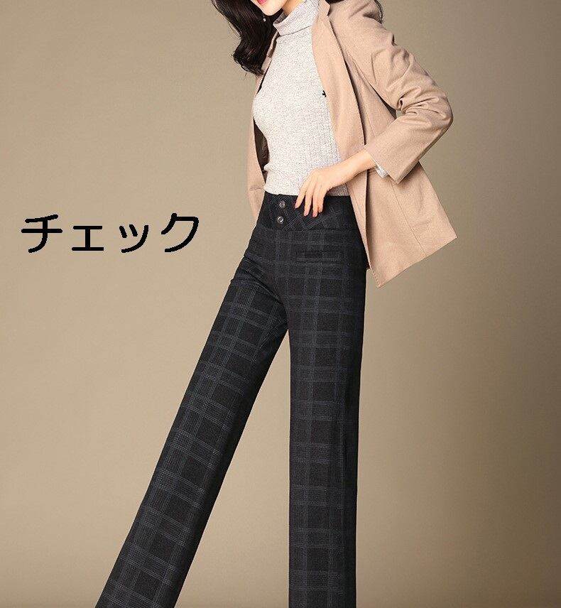 全3色 ストレートパンツ ハイウエスト 無地 チェック ストライプ ウエストベルト エレガント 上品 シンプル ベーシック 韓国 オルチャン