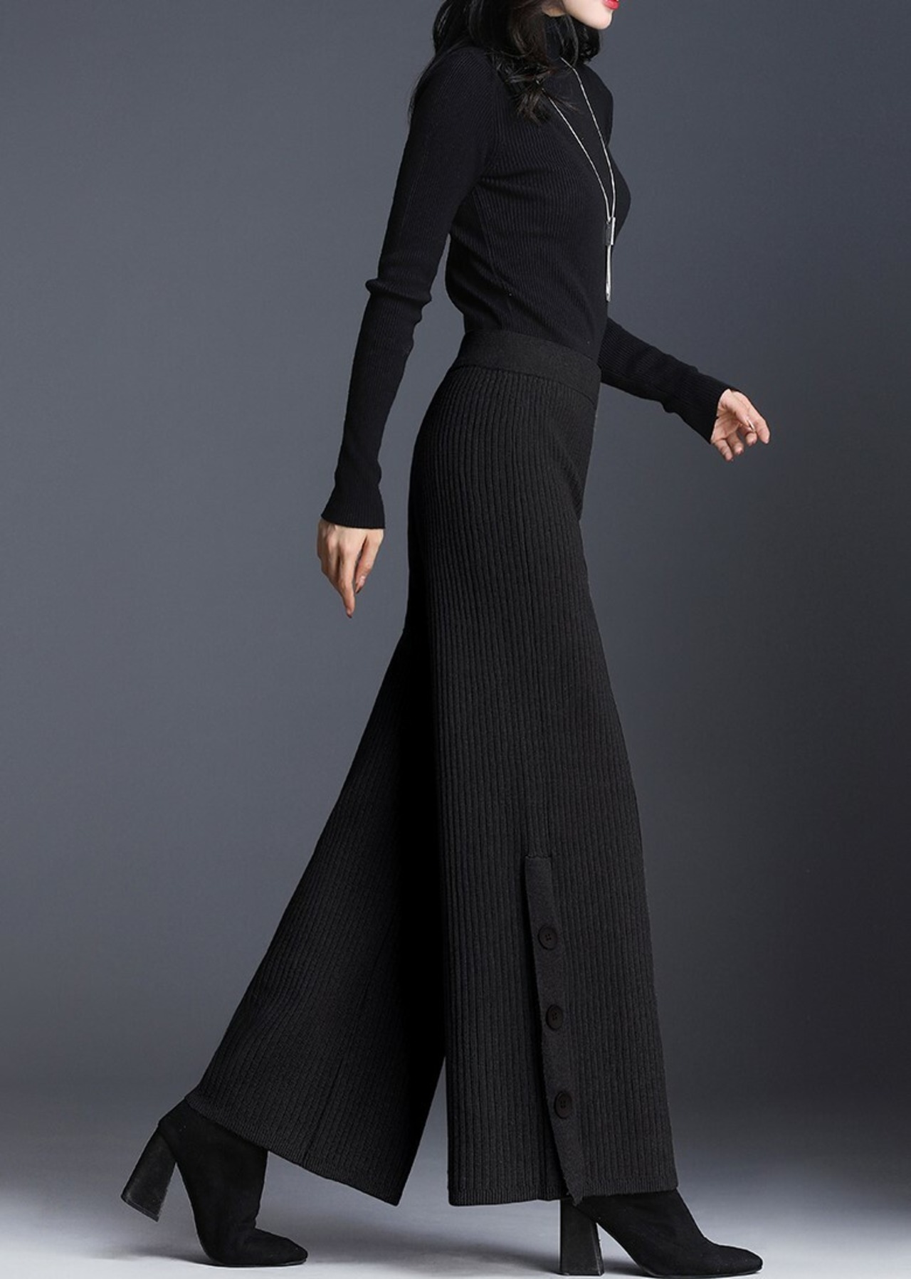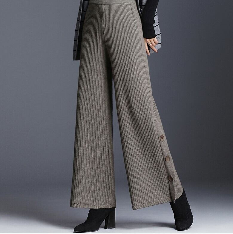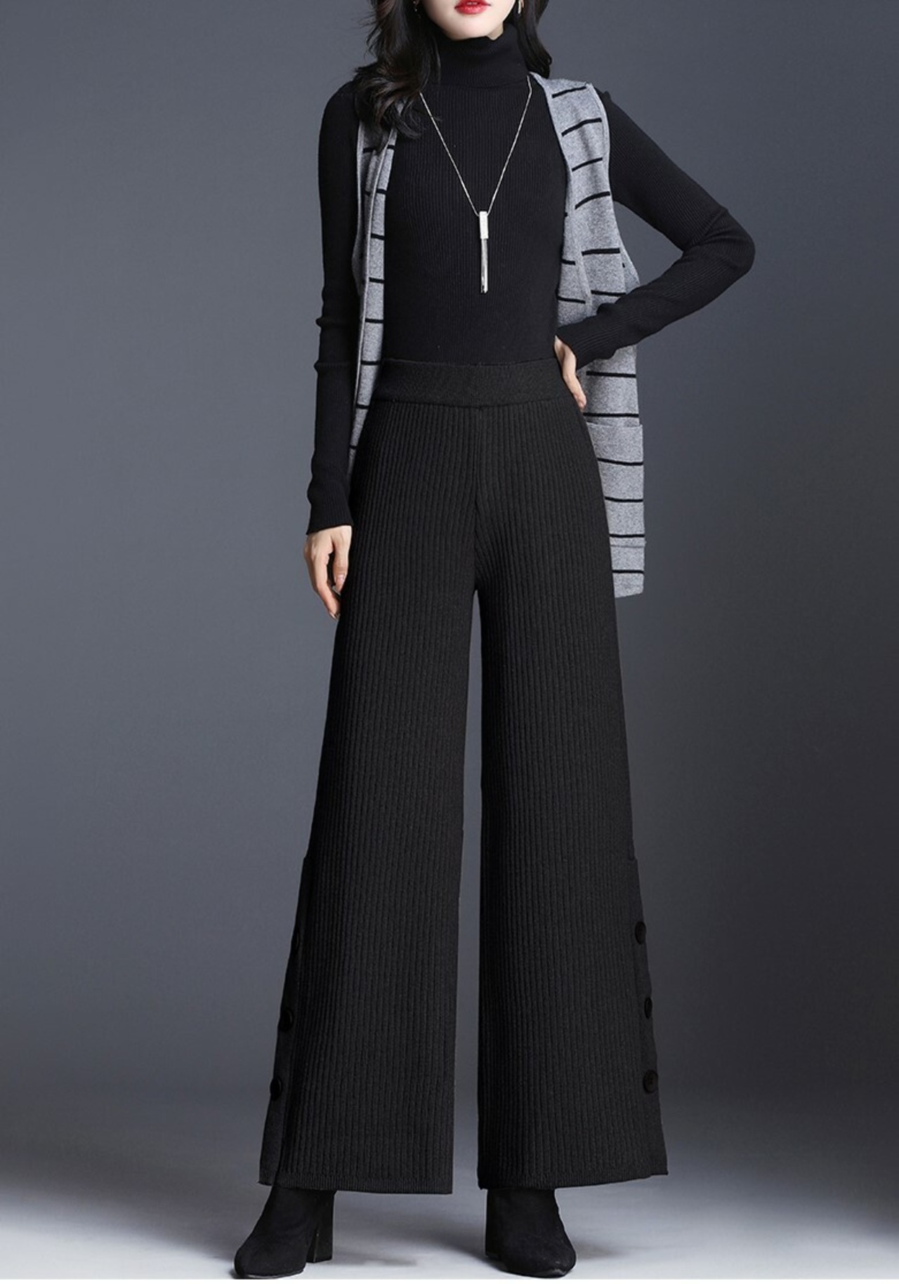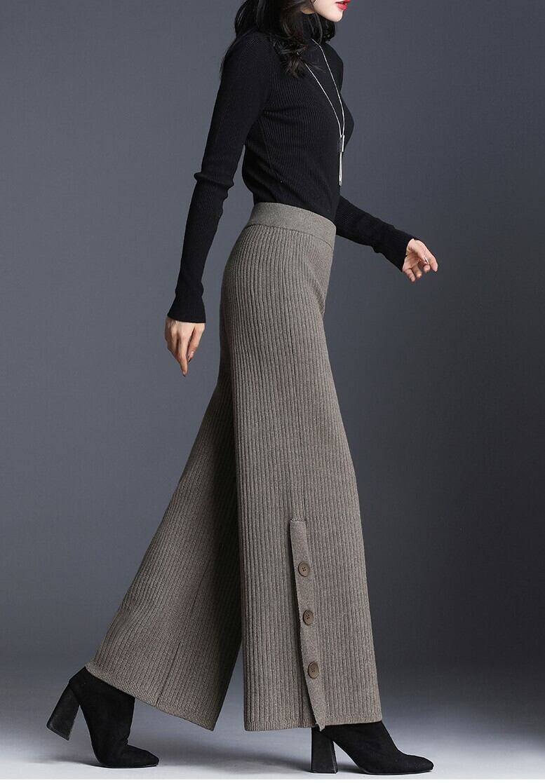 全2色 ストレートパンツ ストレッチパンツ ハイウエスト ブラック グレー サイドボタン エレガント 上品 シンプル ベーシック 韓国 オルチャン 秋 冬