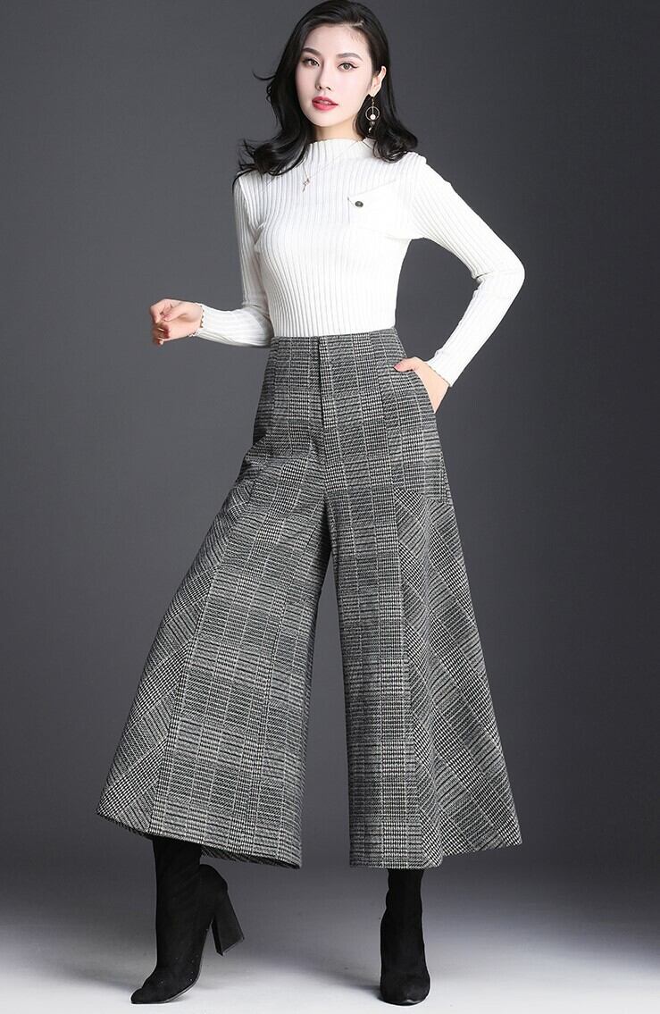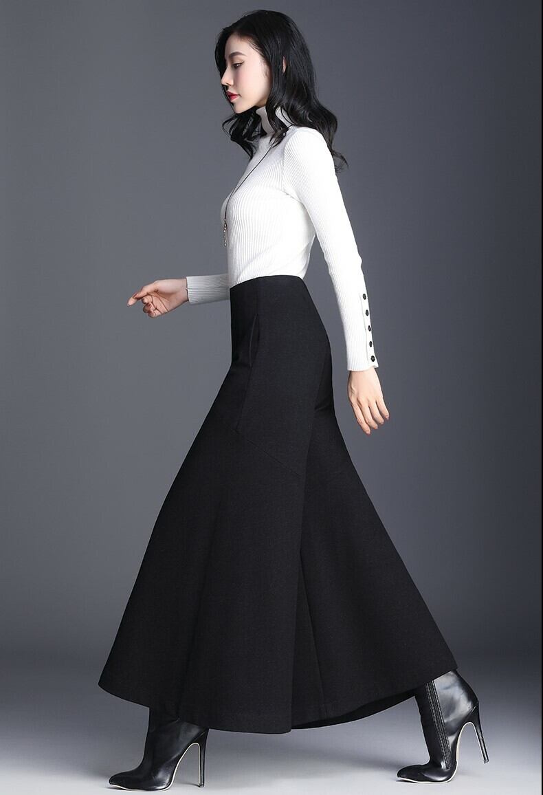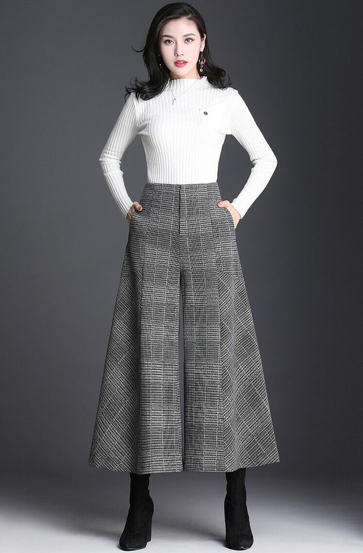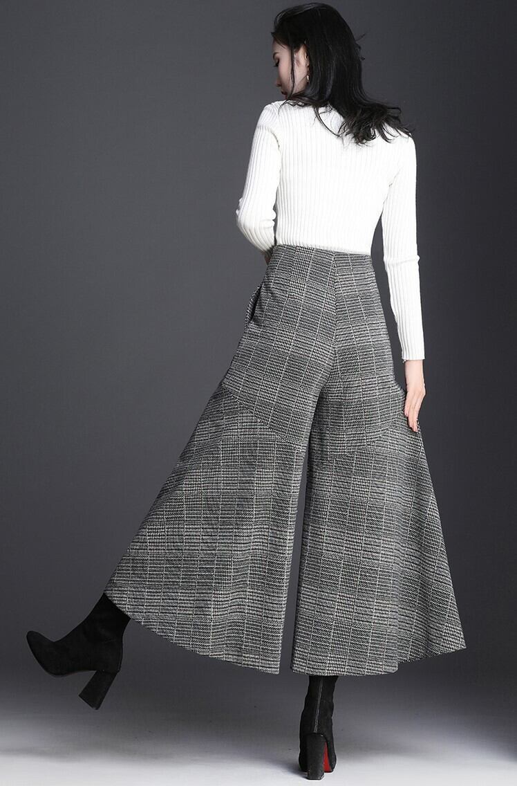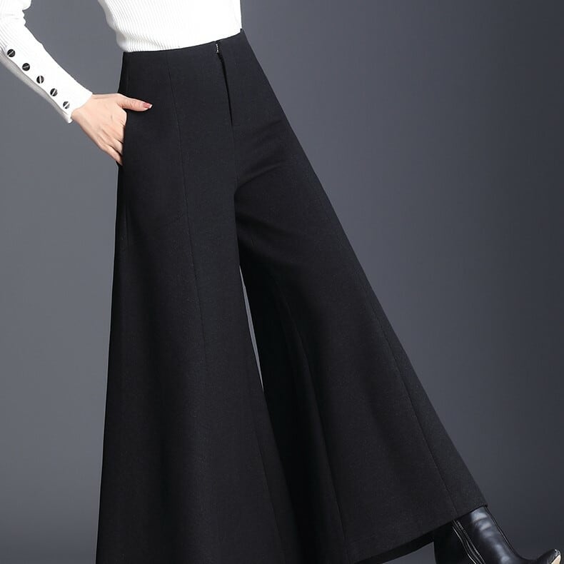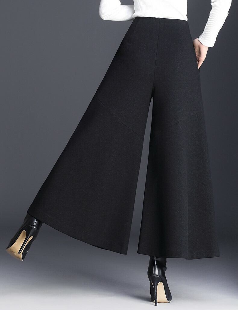 全2色 ワイドパンツ キュロットパンツ スカンツ ガウチョ グレー ブラック 秋 冬 ハイウエスト 大人カジュアル 上品 エレガント クラシカル 韓国 オルチャン