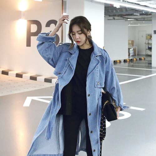 デニムコート ジーンズ オータムコート ロングコート 秋 冬 長袖 ラグランスリーブ オーバーサイズ ジャケット 学生 通学 カジュアル 韓国 オルチャン