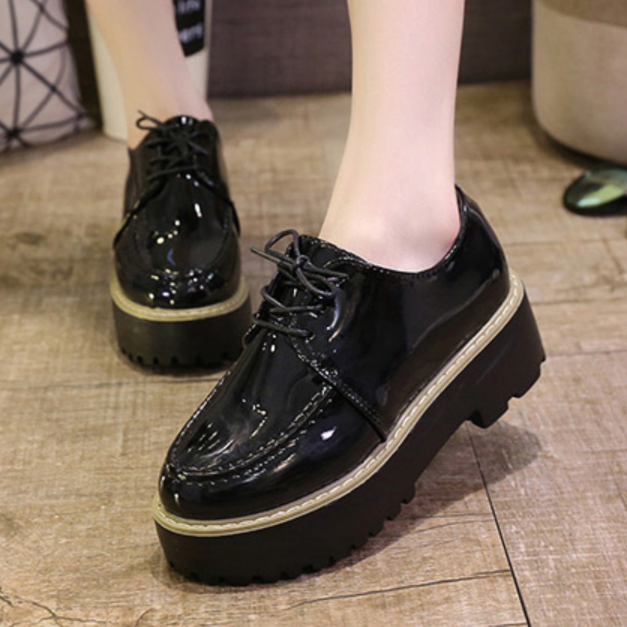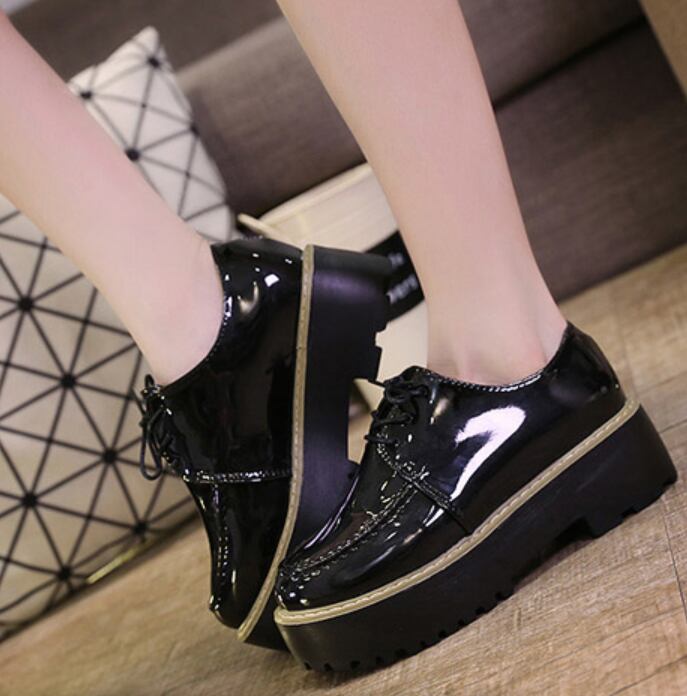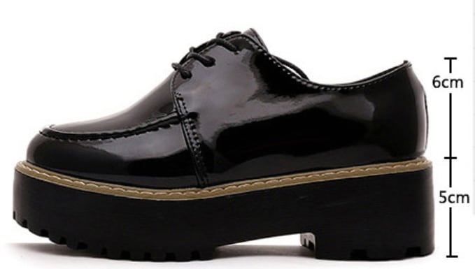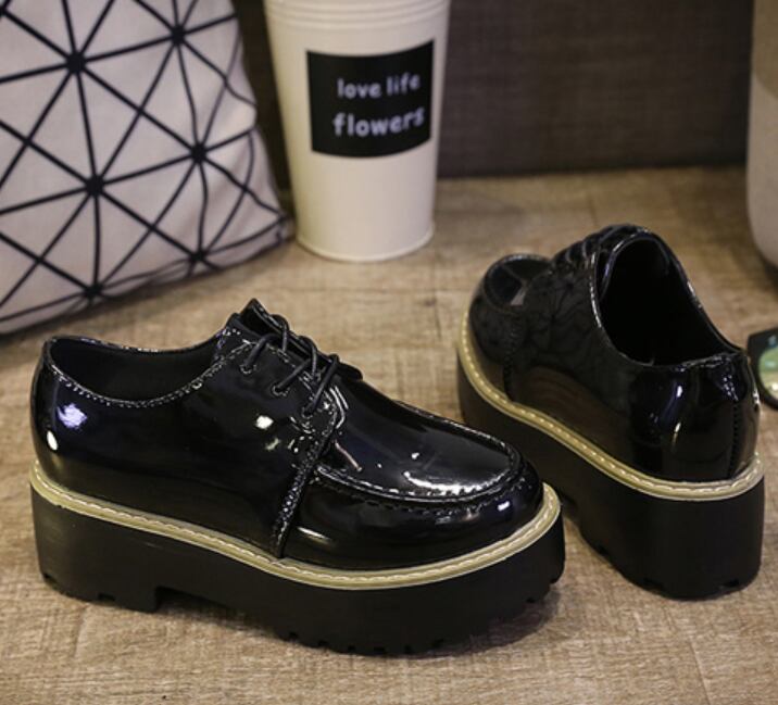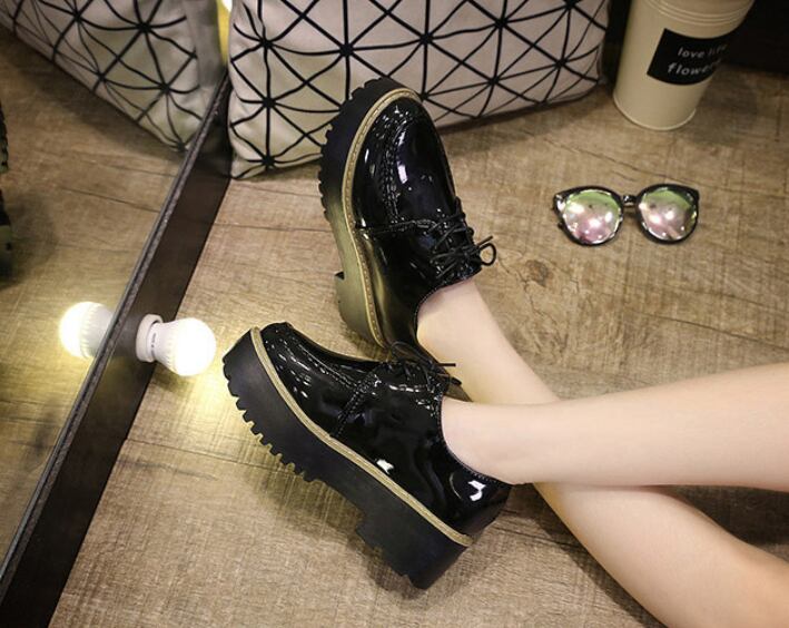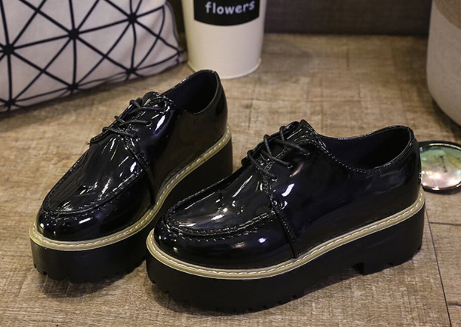 靴 ローファー オックスフォード レトロ フェイクレザー 厚底 シューレース ミドルヒール カジュアル ブラック 秋冬