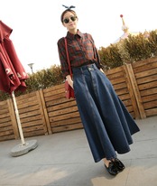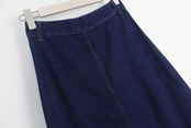 ロング丈のフレアスカートと上品な印象ながらも、デニム素材とフロントボタンでカジュアルさを出せる便利な一着です。