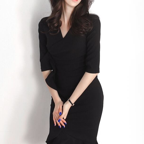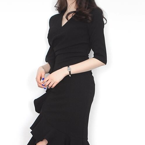 全2色 ワンピースシンプル 細身上品 セクシーフェミニン女子会 オフィス デート コンサバ オルチャン