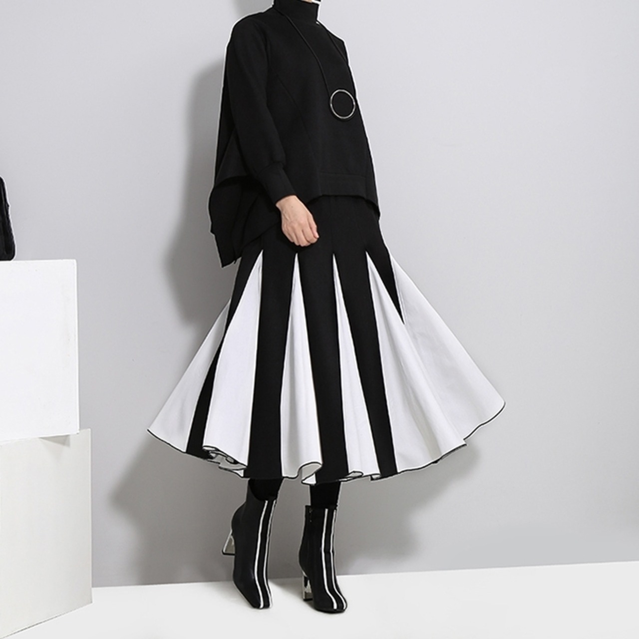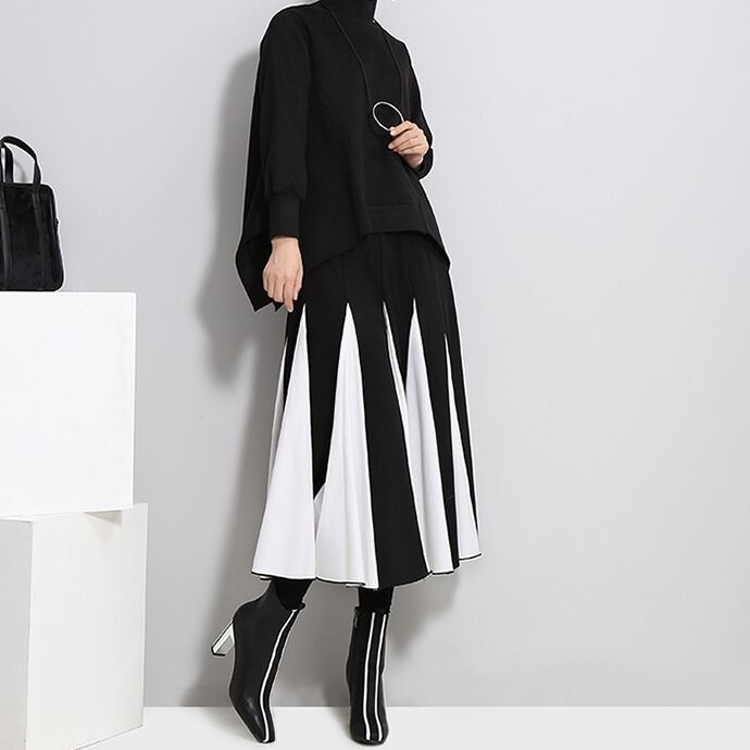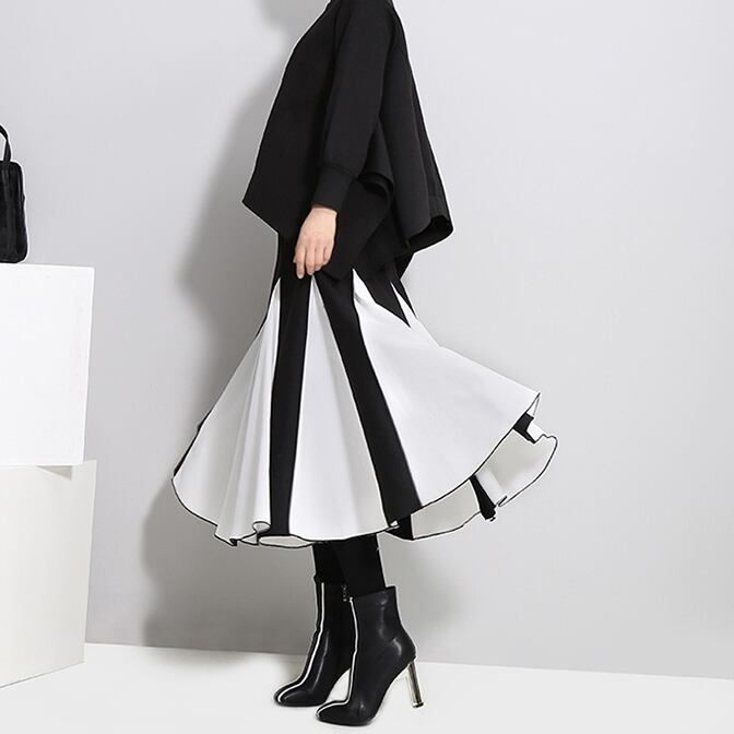 バイカラーのハイウエストスカートがおしゃれ♪
