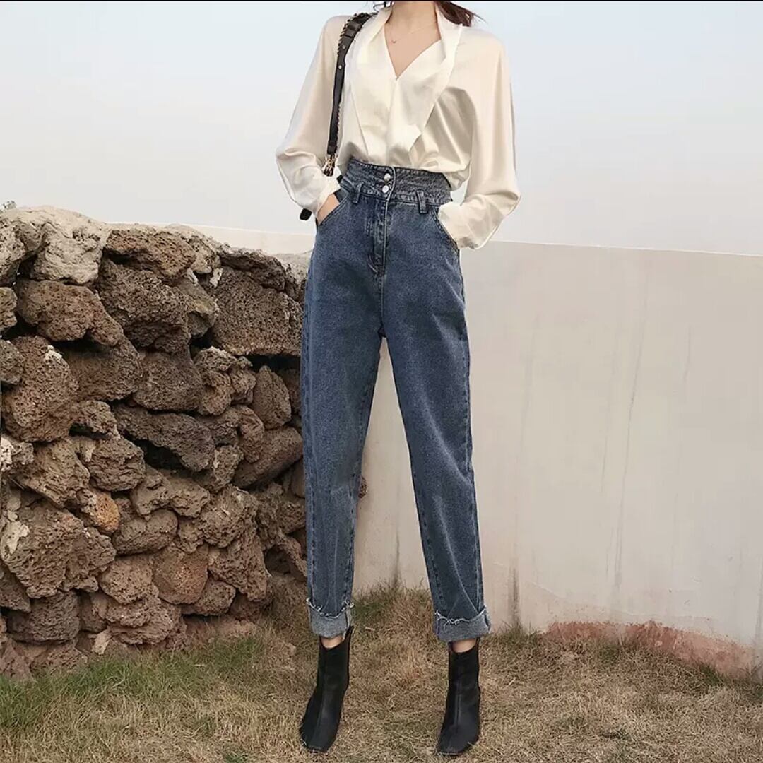 全2色 デニムパンツ ボトムス ハイウエスト 無地 お出かけ お買い物 デート 女子会 秋冬 春 通勤 通学 大人 カジュアル キレイめ