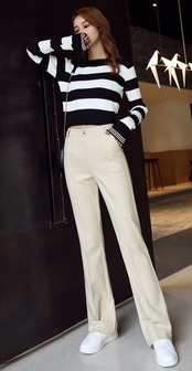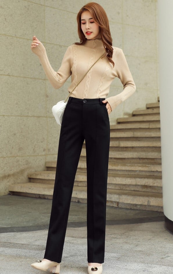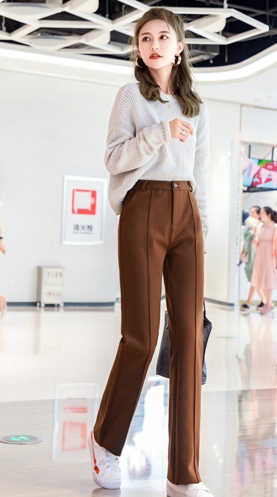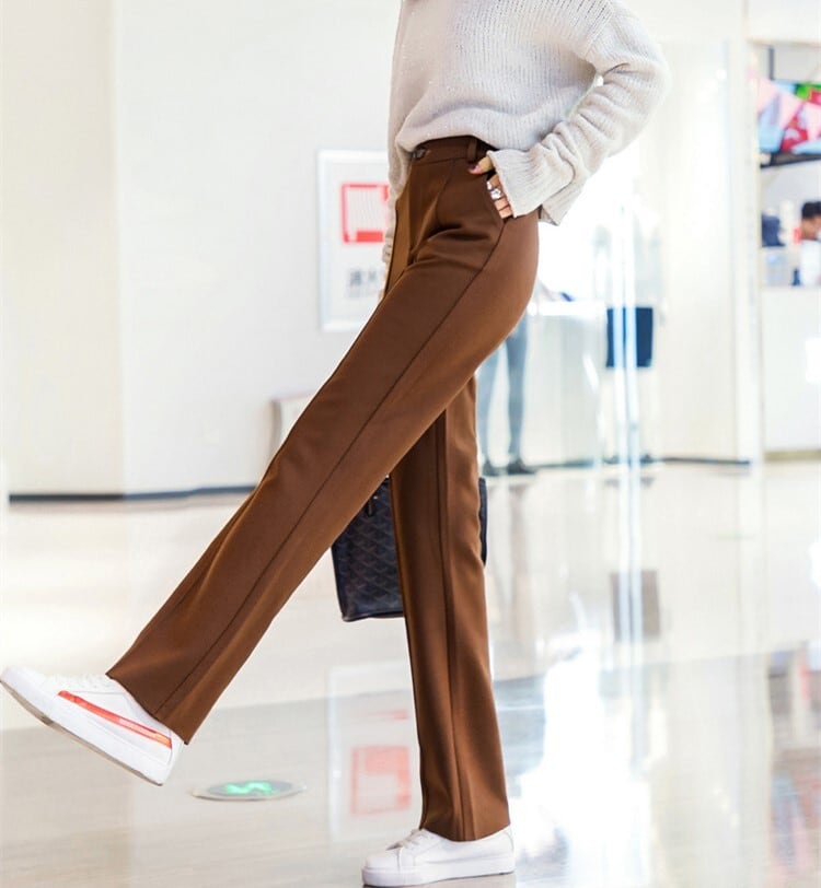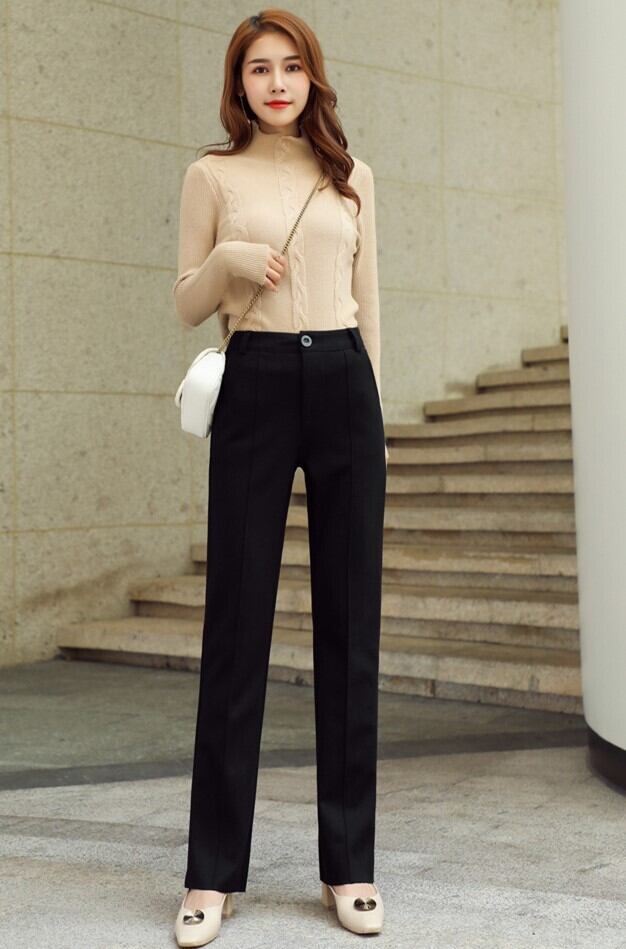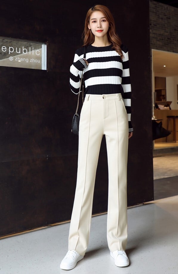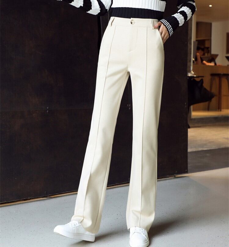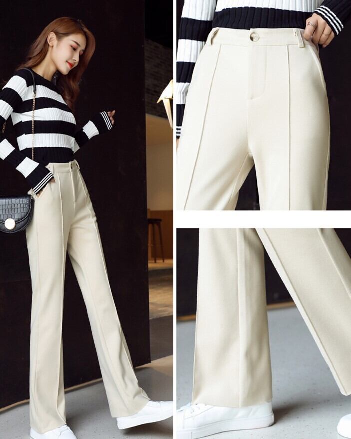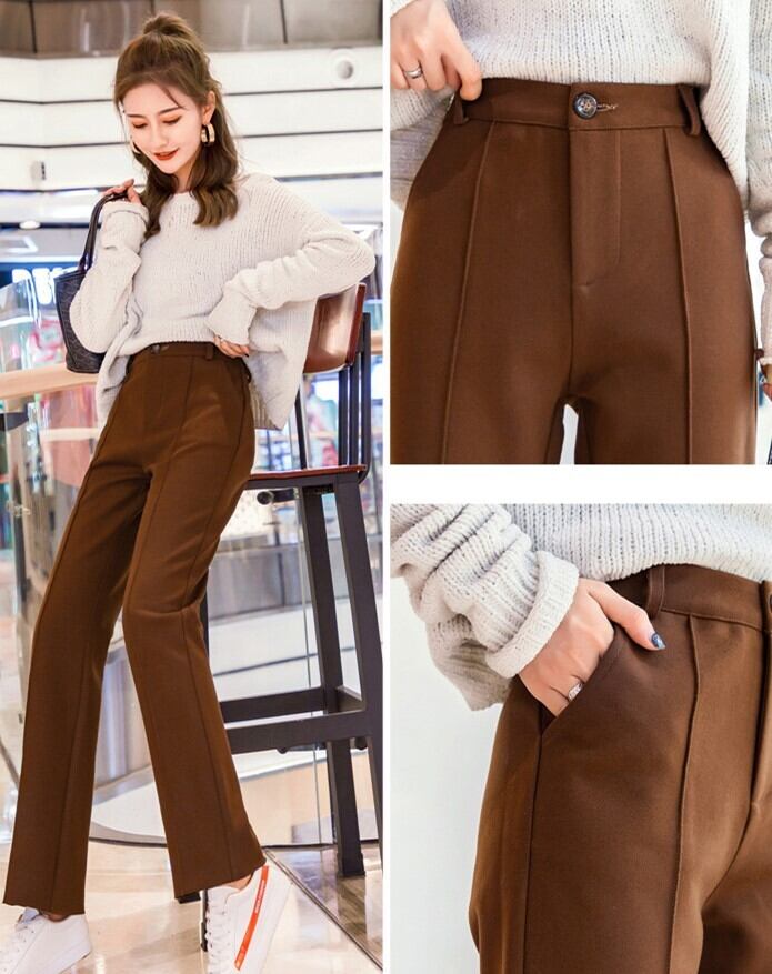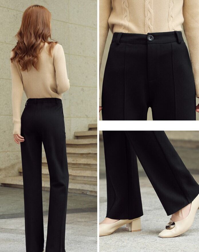 全3色 ストレートパンツ フルレングス センタープレス ブラック ホワイト ブラウン 大人カジュアル オフィスカジュアル 通勤 秋 冬 韓国 オルチャン