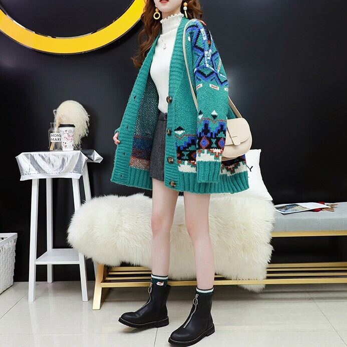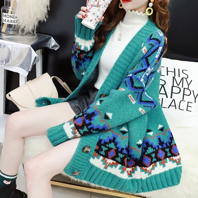 冬らしいノルディック柄のカーディガン♪