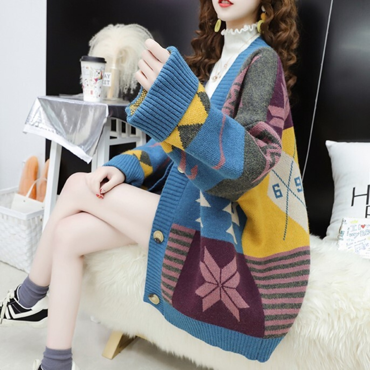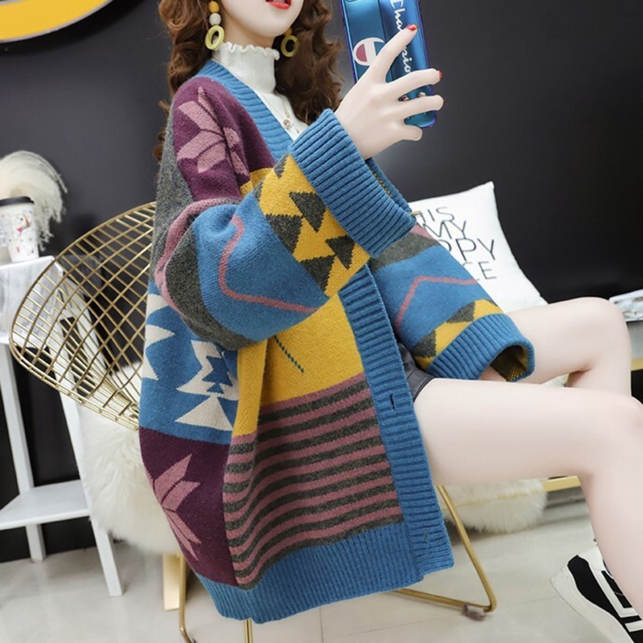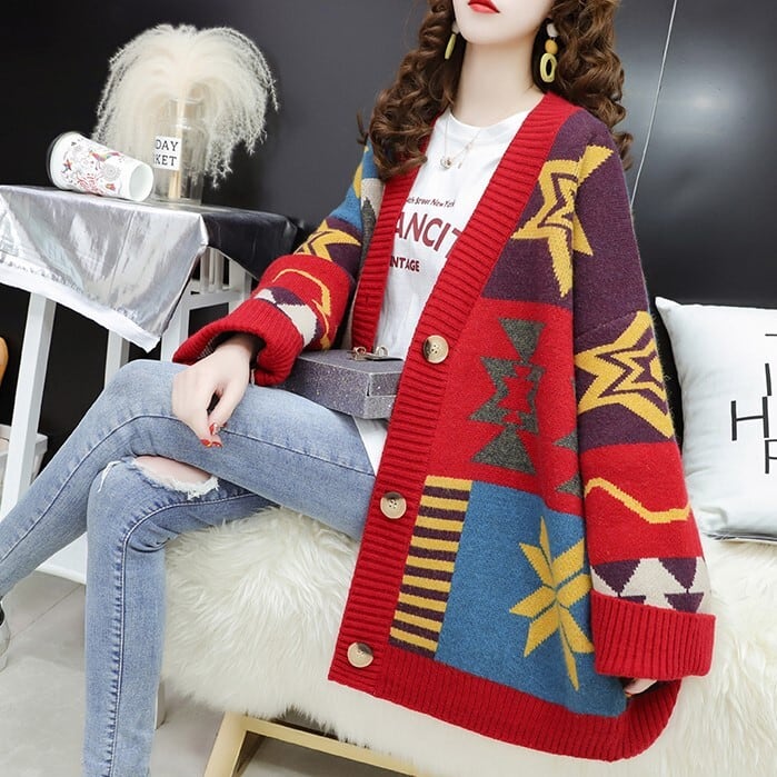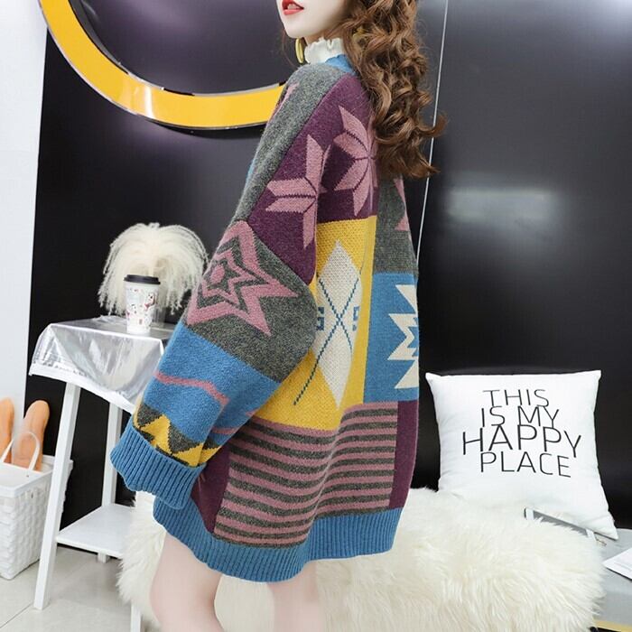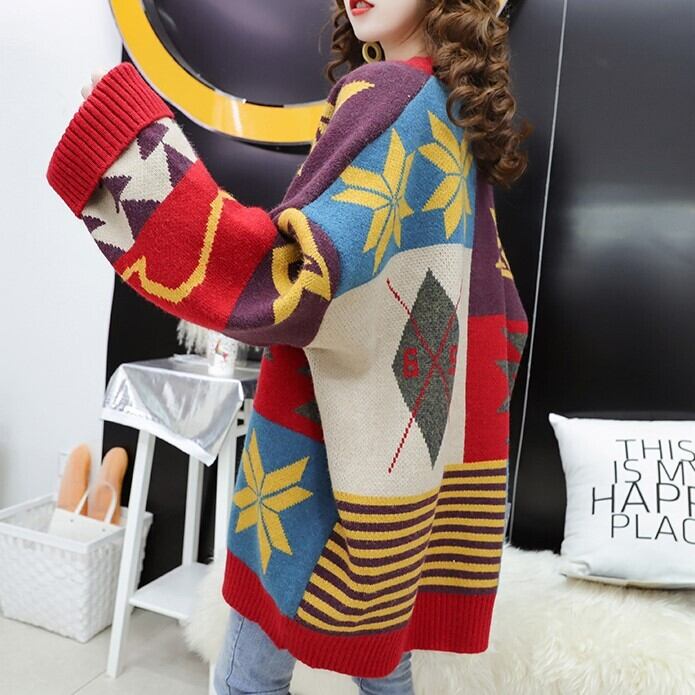 オーバーサイズのインディアン柄が特徴のロングカーディガン♪