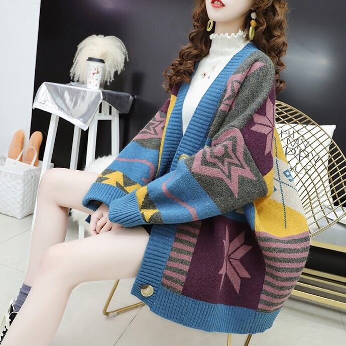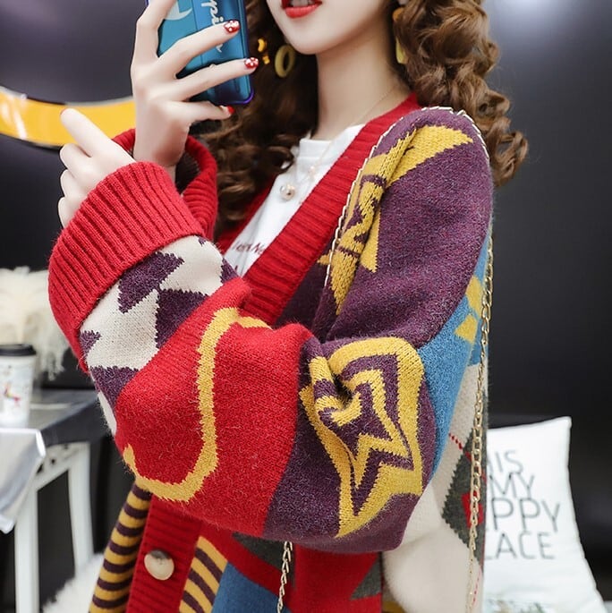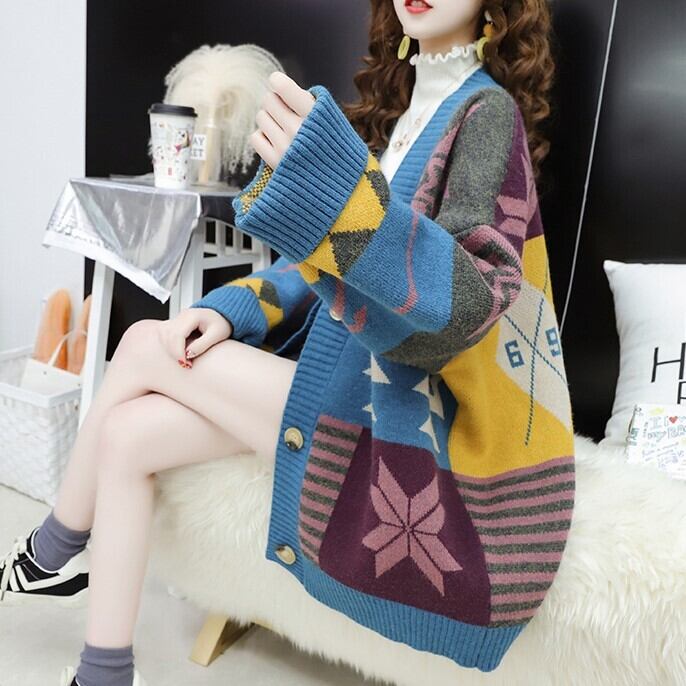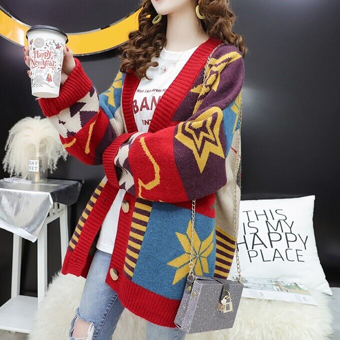 全2色 ニットカーディガン オーバーサイズ 長袖 ドロップショルダー レッド ブルー 大人カジュアル 通学 学生 羽織 秋 冬 大人かわいい 韓国 オルチャン 休日コーデ