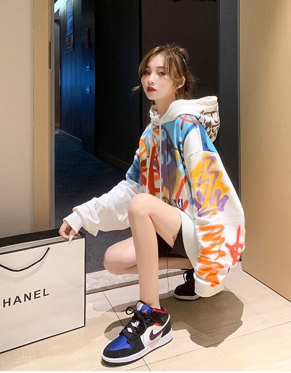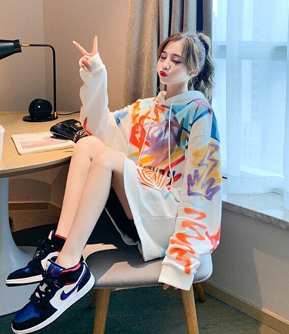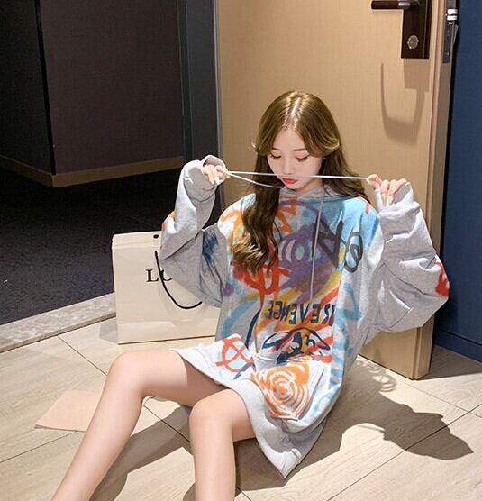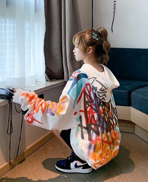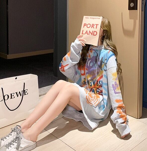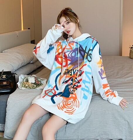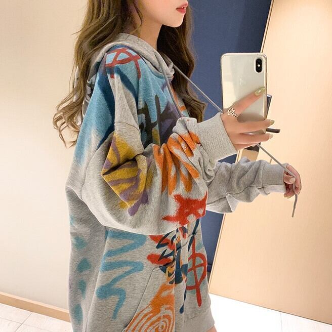 全2色 選べる裏起毛 スウェット パーカー プリントロゴ 落書き グレー ホワイト 大人カジュアル スポーティ 原宿系 ポップ 学生 通学 韓国 オルチャン