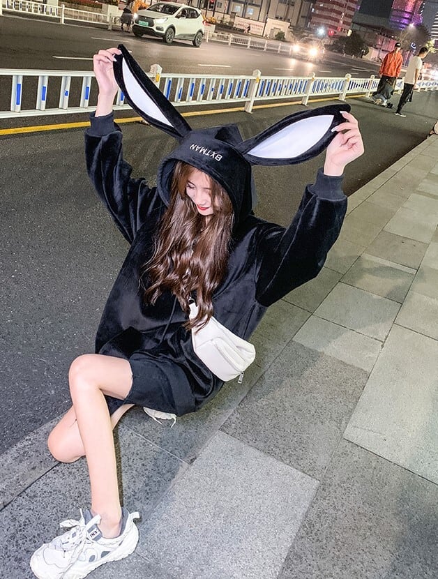 韓国で大人気のうさぎの耳が付いたスウェット♪