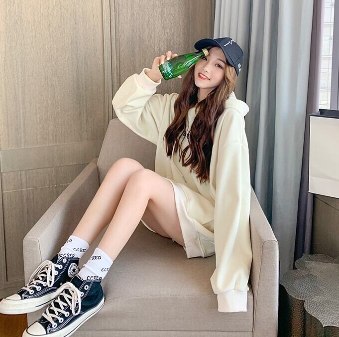 お尻まで隠れるロング丈なのでミニワンピとしても。