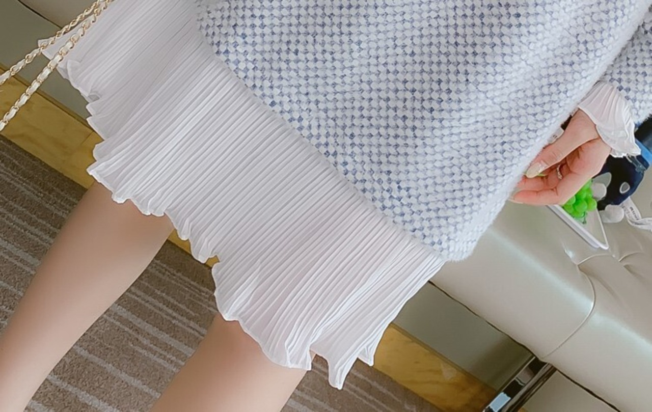 プリーツチュールがフェミニンで、女性らしい抜け感をプラスしてくれますよ◎