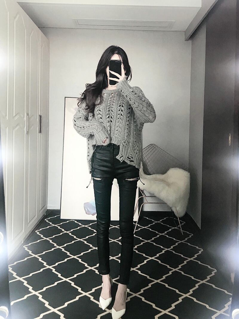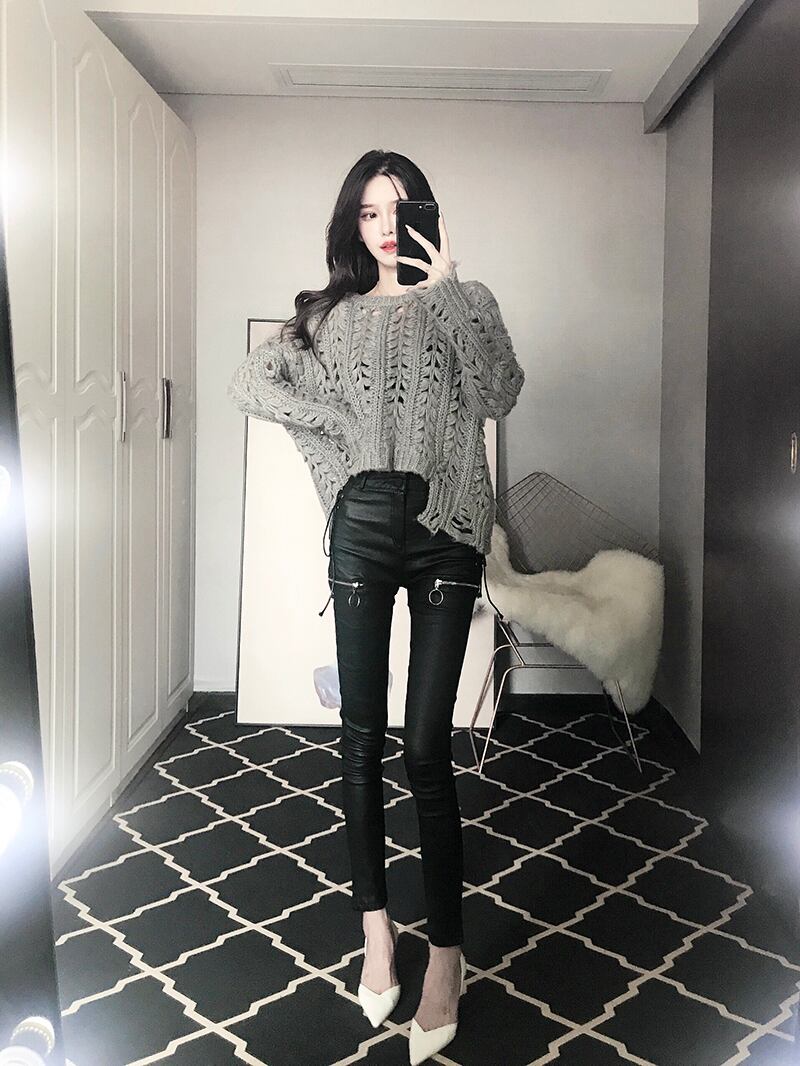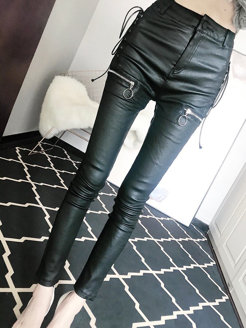 スキニーパンツ レギンスパンツ サイドジッパー サイドリボン 編み上げ フィット ハイウエスト スリム 秋 冬 ブラック 大人カジュアル ハード 韓国 オルチャン