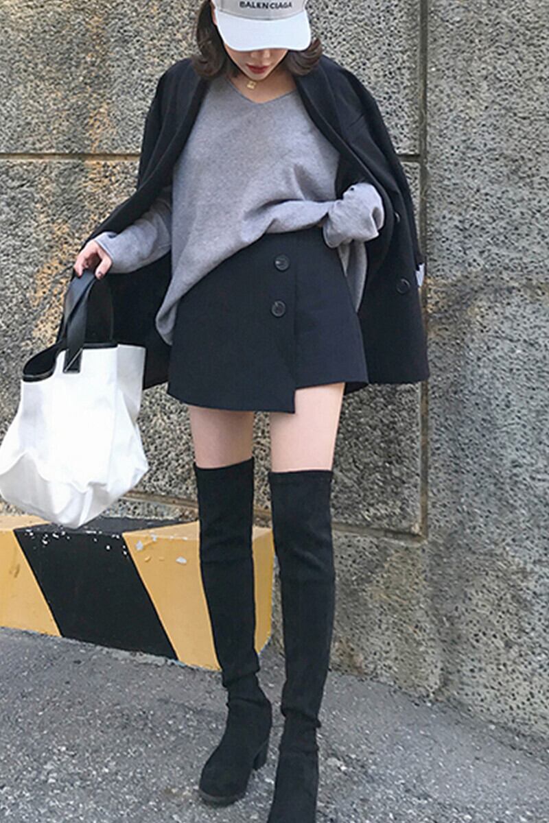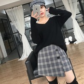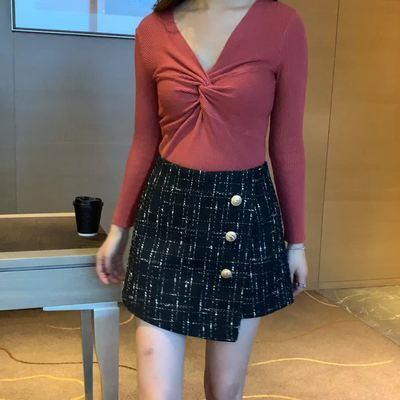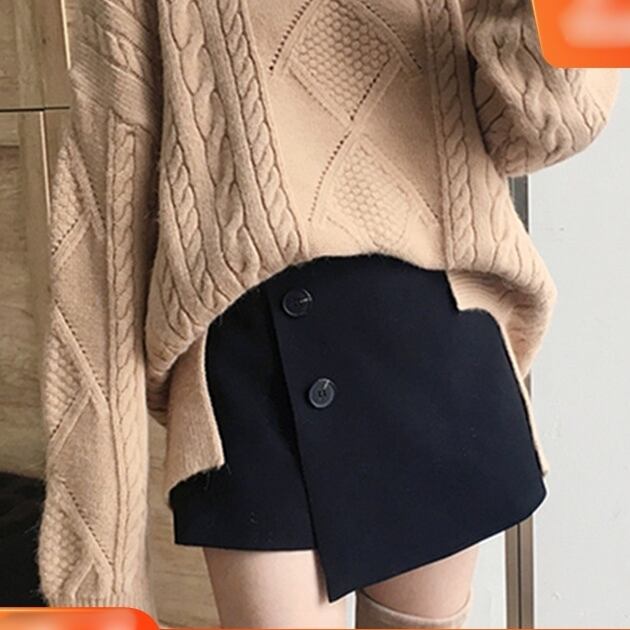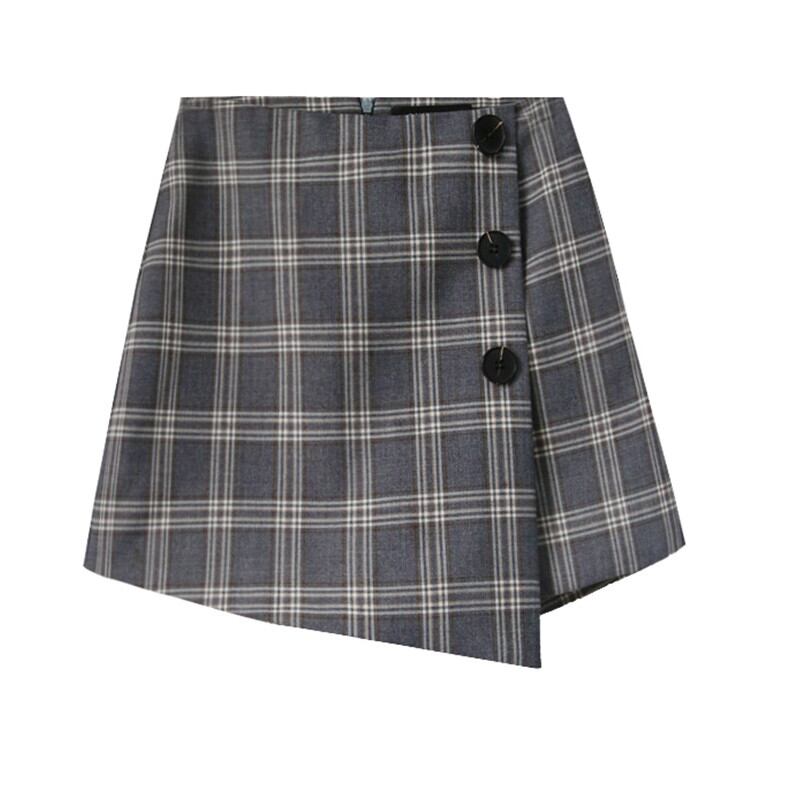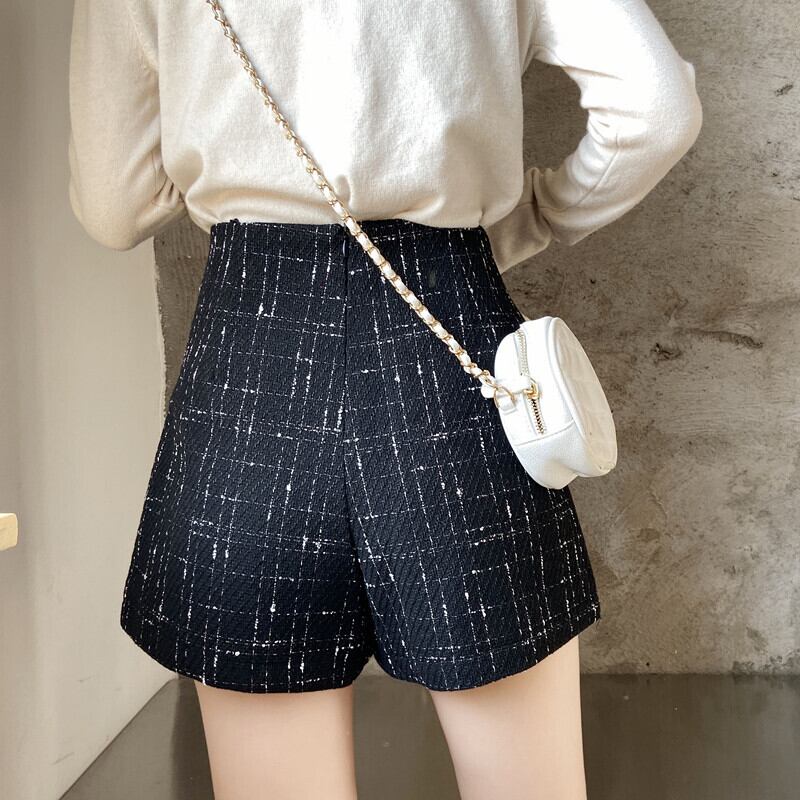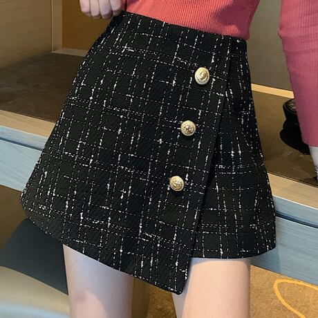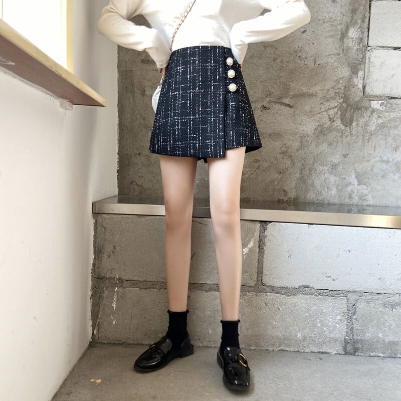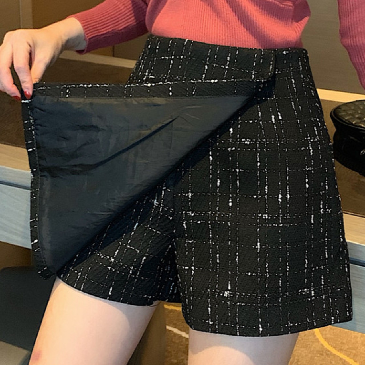 全3色 ミニ丈 キュロットスカート ラップスカート ハイウエスト 無地 チェック柄 秋冬 お出かけ デート 女子会 カジュアル フェミニン ガーリー こなれ感 大人可愛い