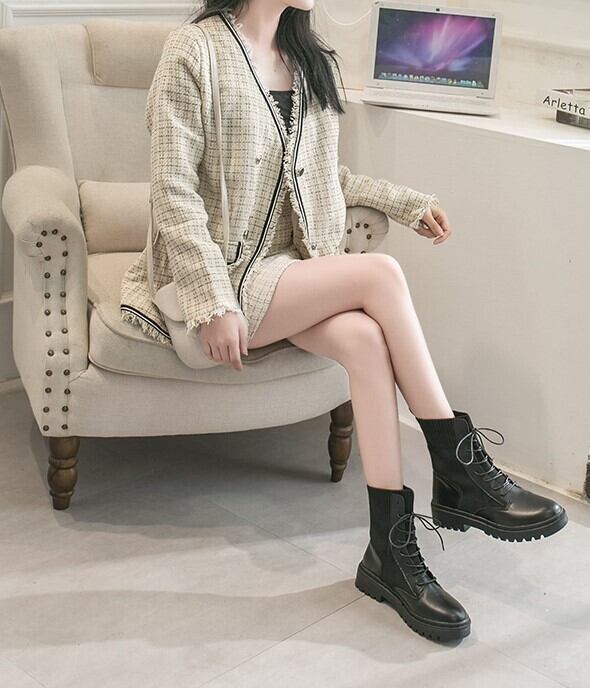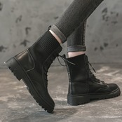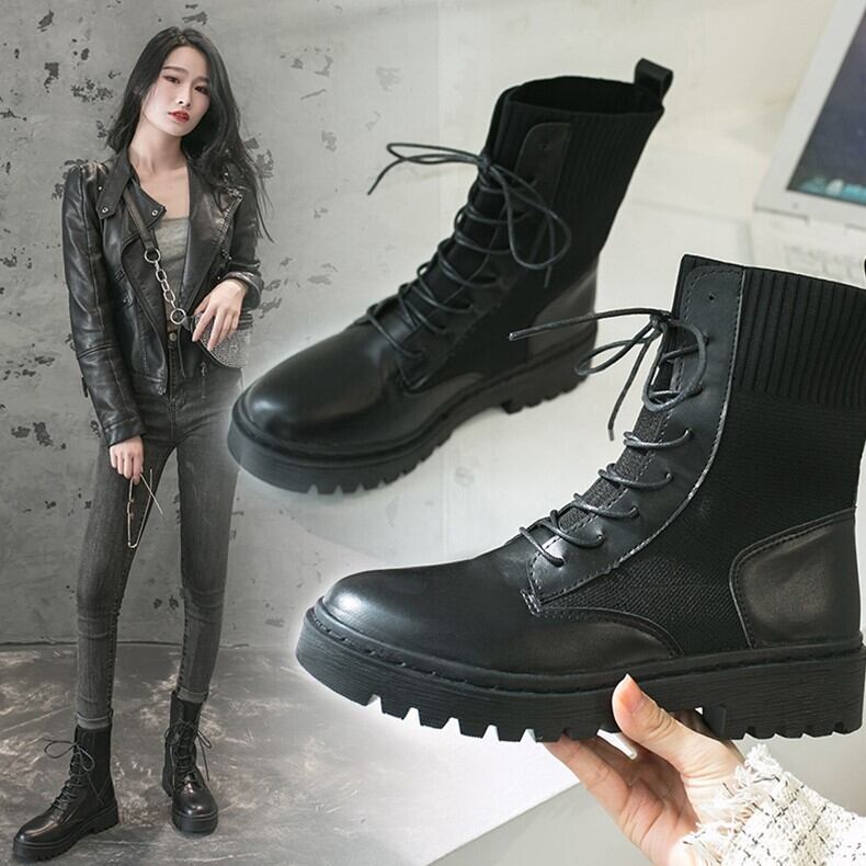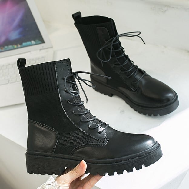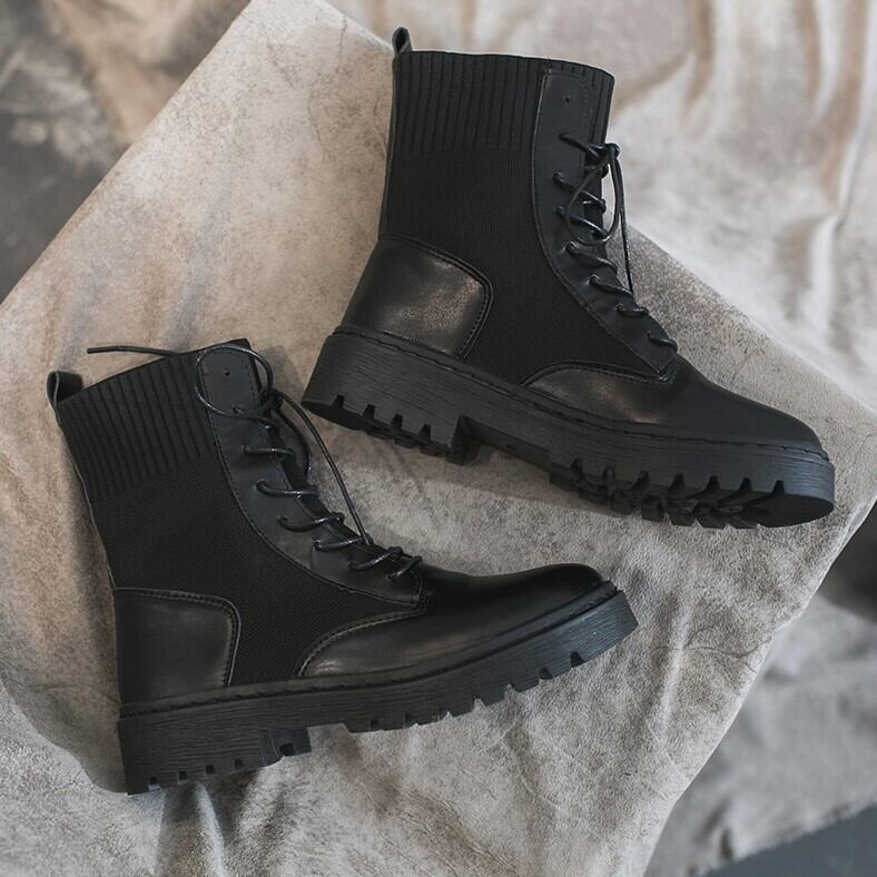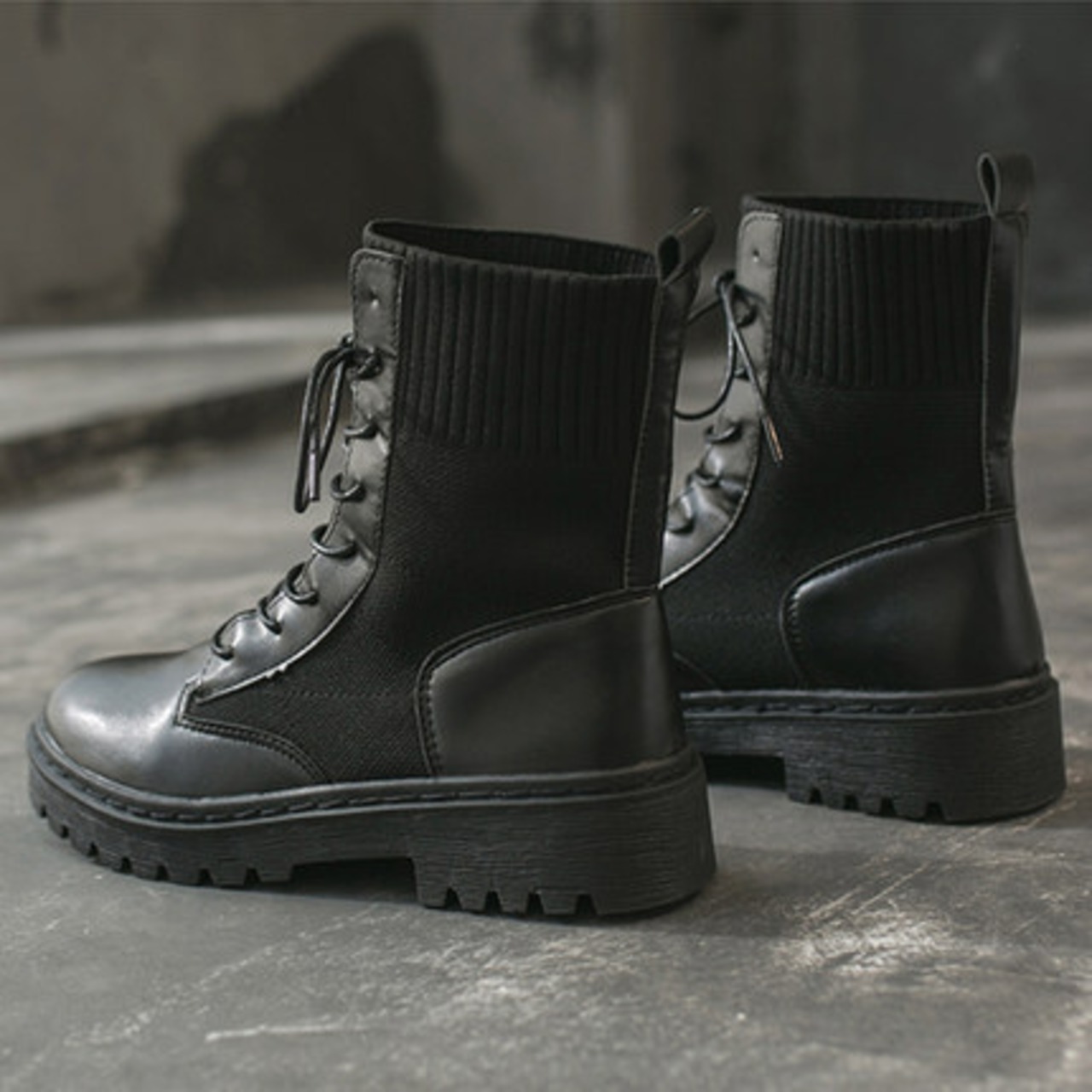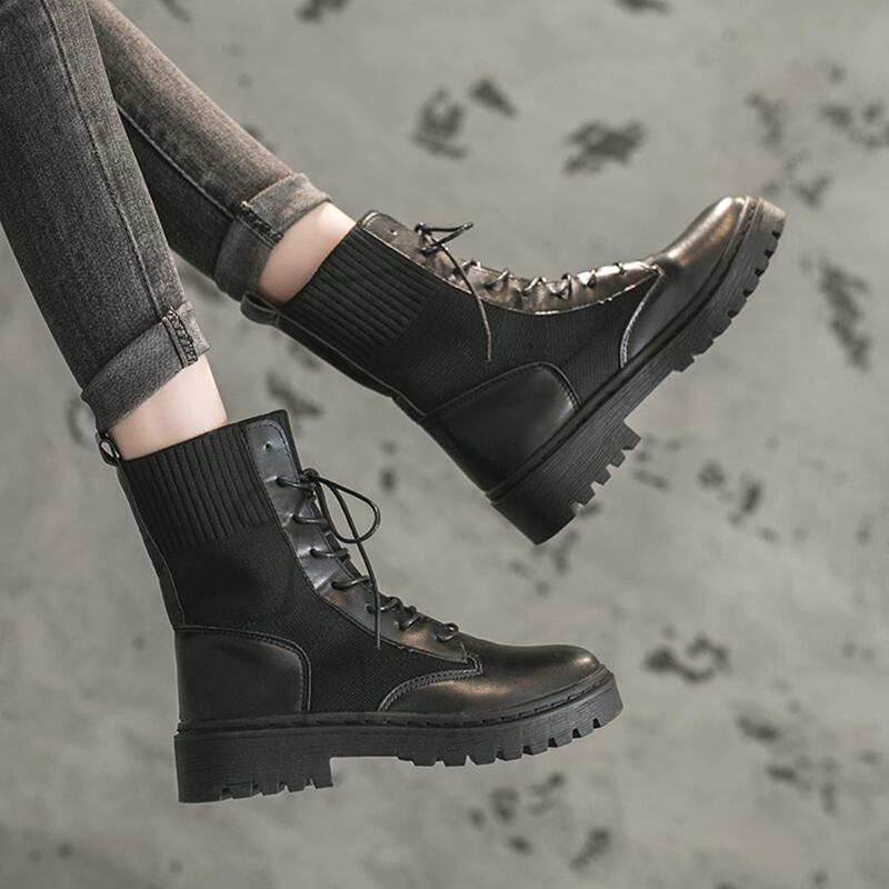 ショートブーツ ブラック レースアップ リブ 無地 シンプル カジュアル メンズライク お出かけ デート 秋冬