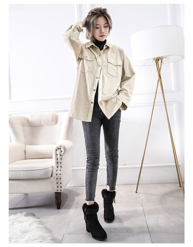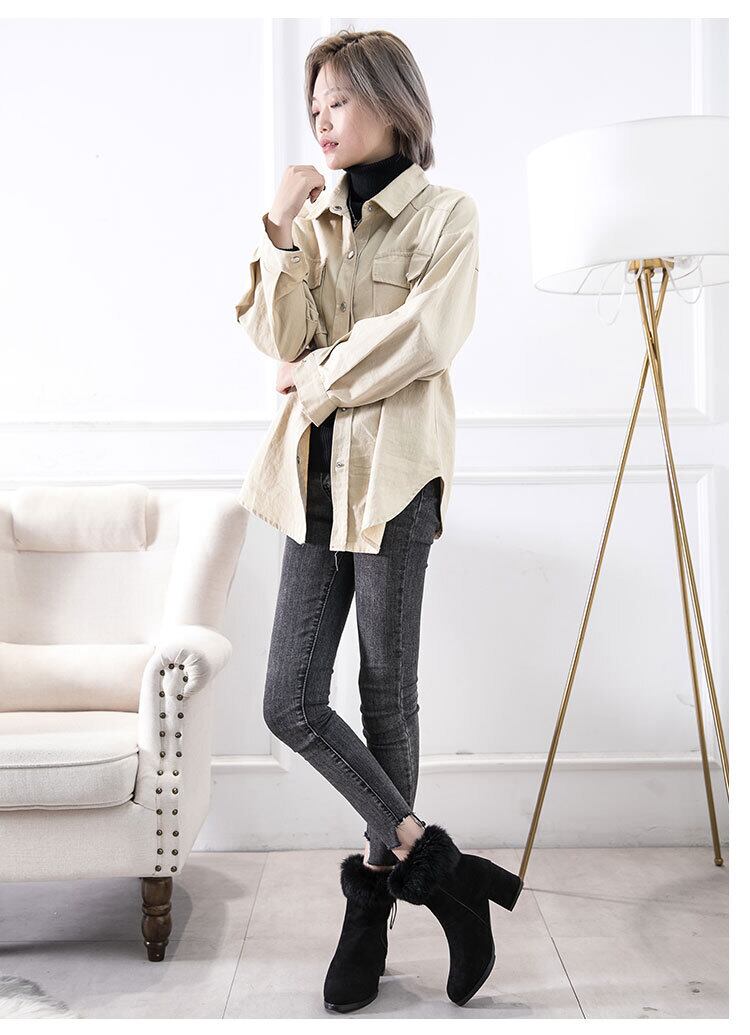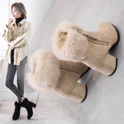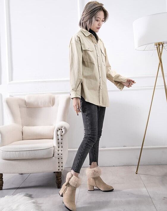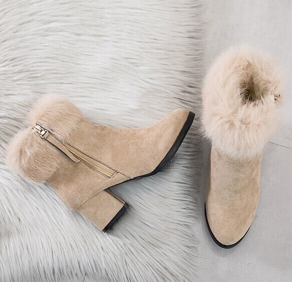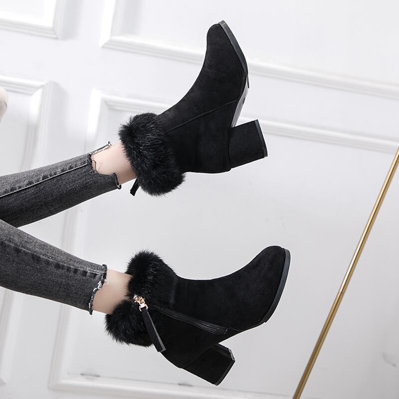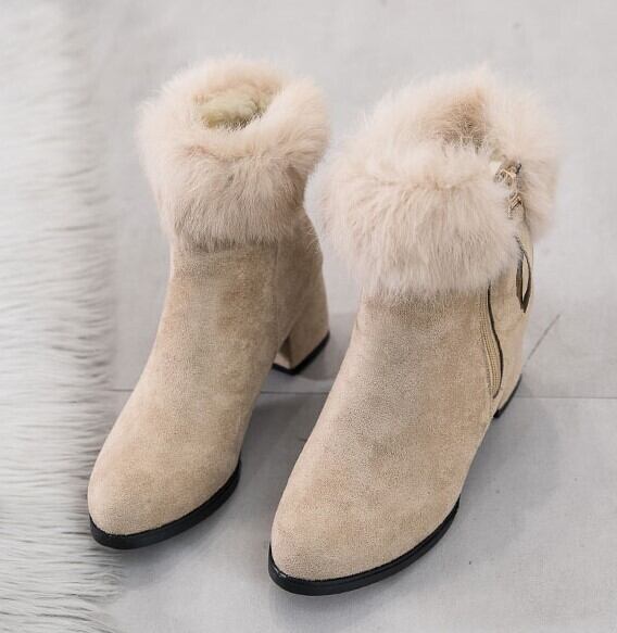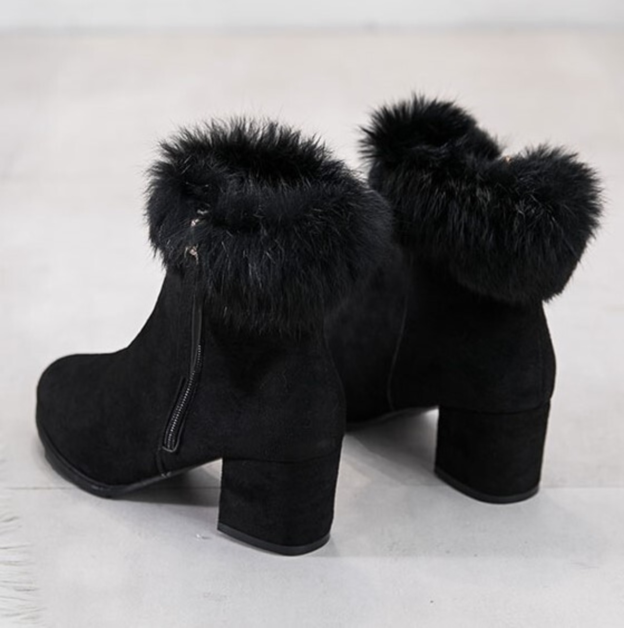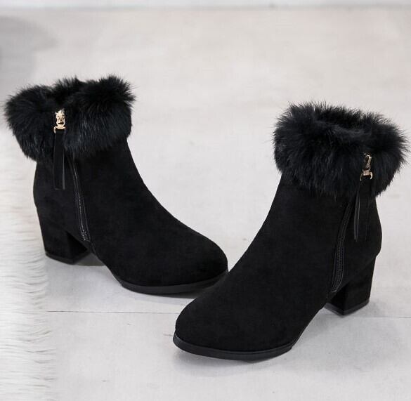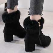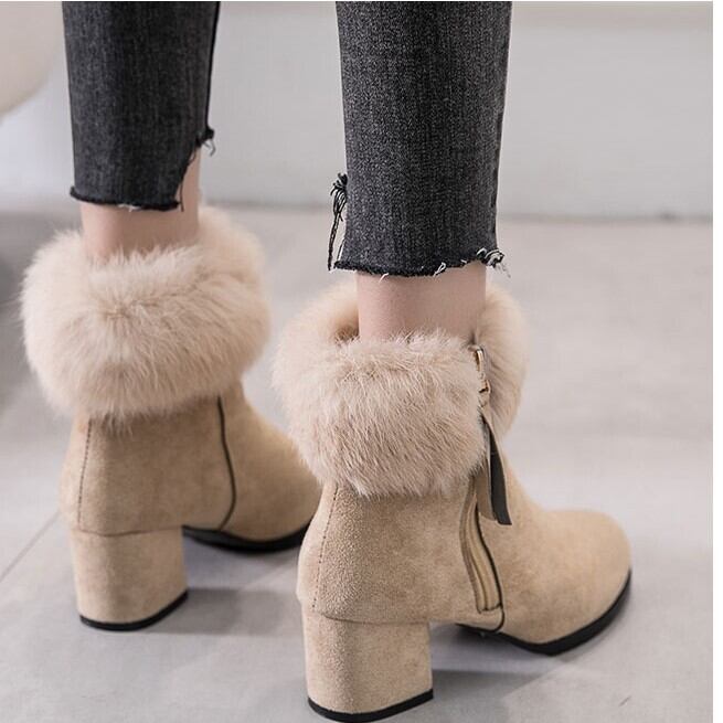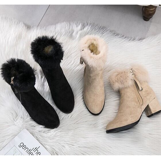 全2色 ショートブーツ ミッドヒール チャンキーヒール ファー 無地 シンプル カジュアル お出かけ デート 秋冬
