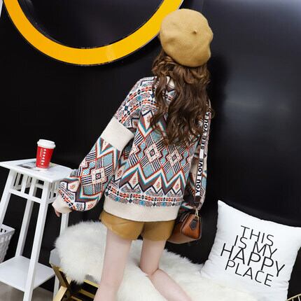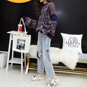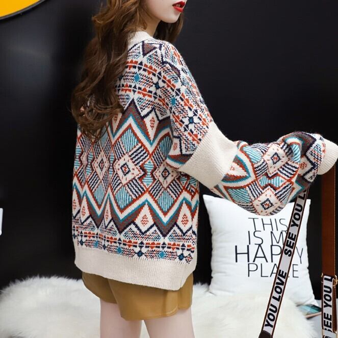 全2色 個性的な柄のランタンスリーブセーター