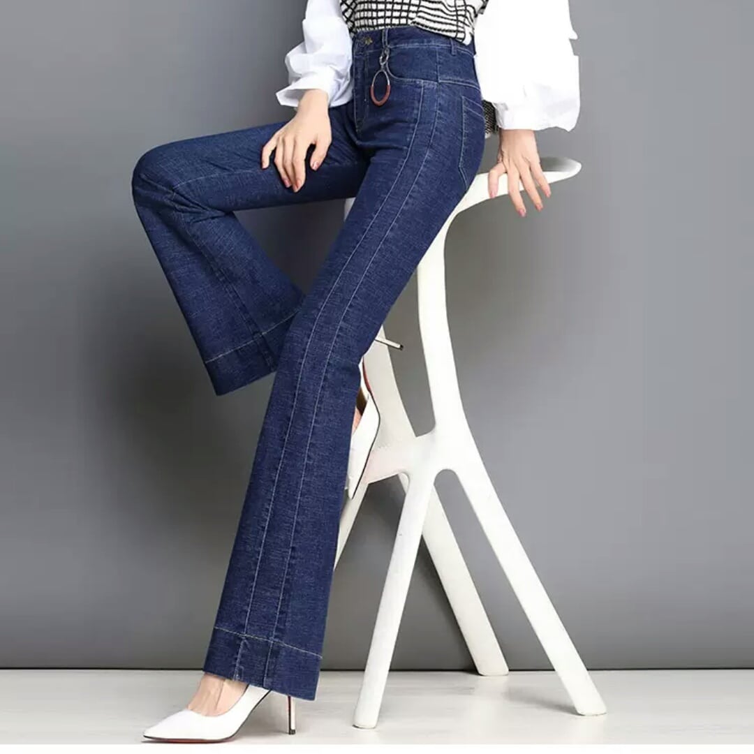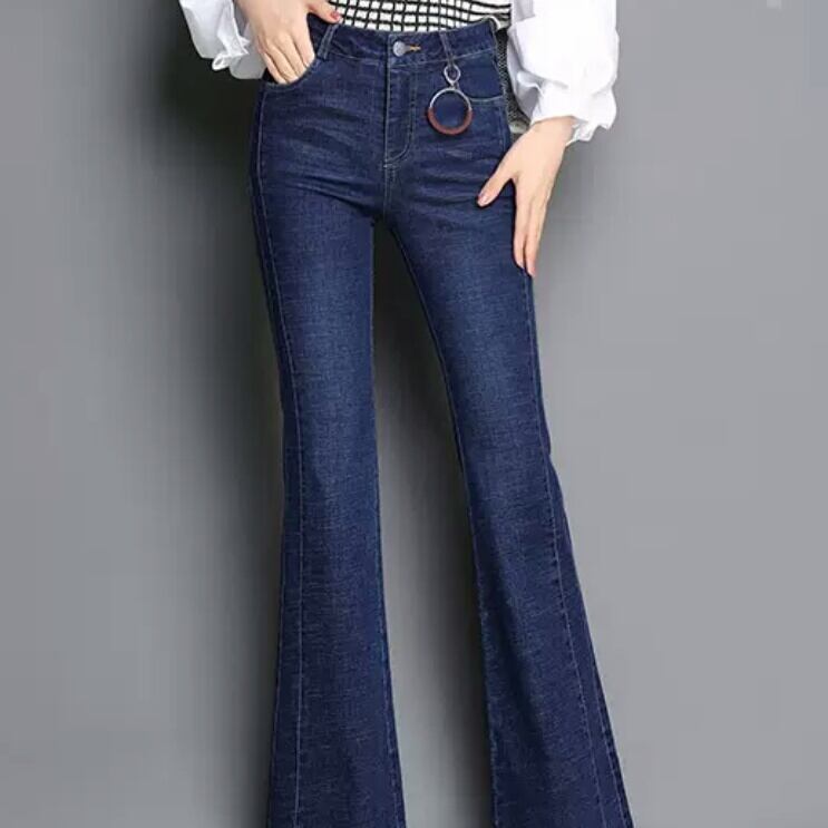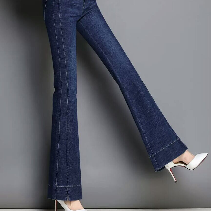ベル型 ストレート デニムパンツ スリム 伸縮性 お出かけ お買い物 デート 女子会 大人 カジュアル シンプル キレイめ モード系 通学 学生