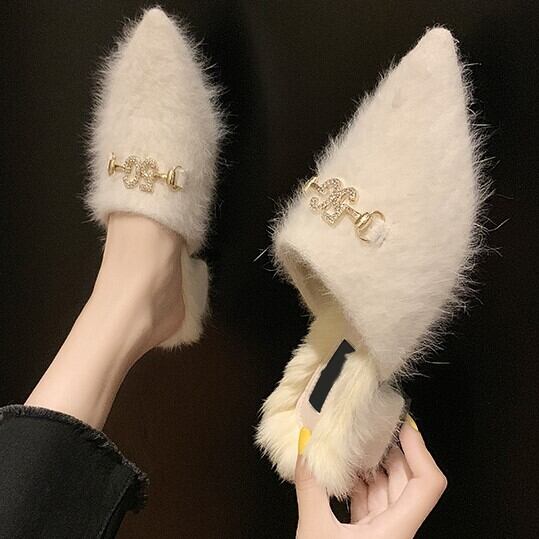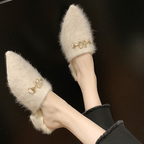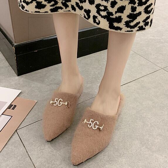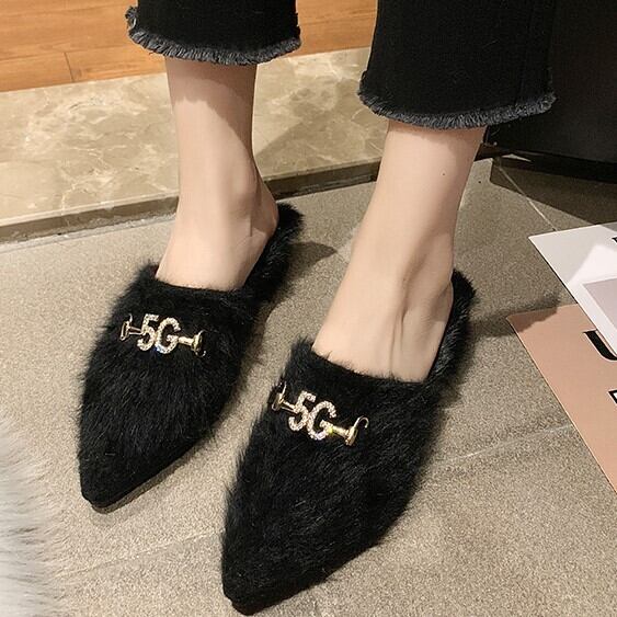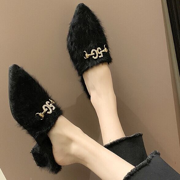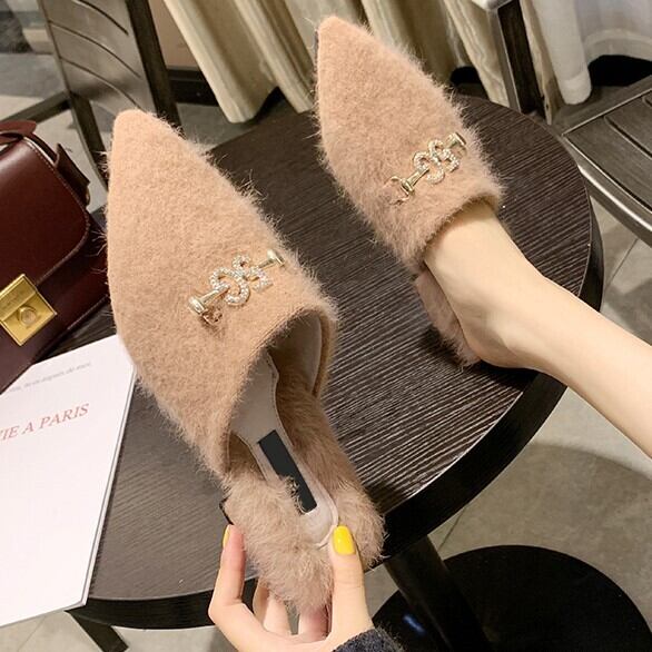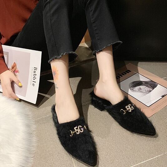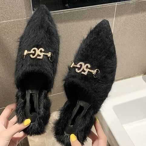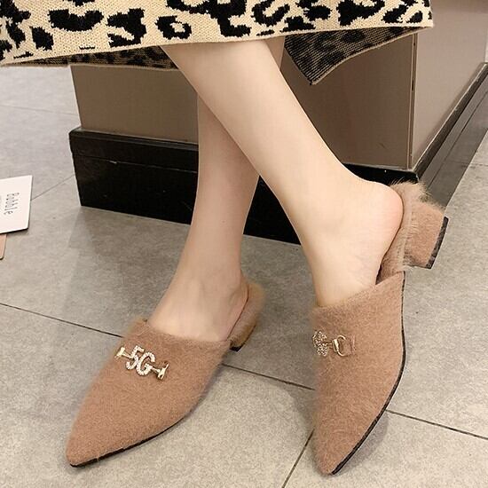 全3色 ミュール サボ ファーサンダル スエード ブラック ベージュ キャメル ローヒール カジュアル こなれ感 大人可愛い 秋冬