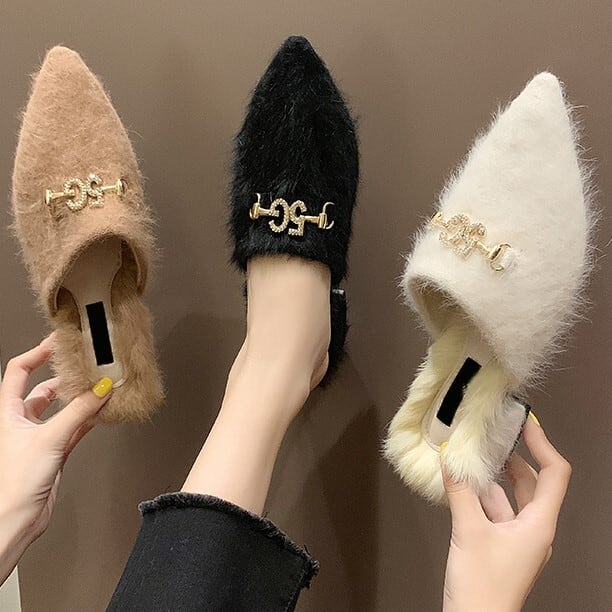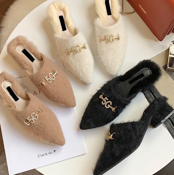 全3色 スエード素材とファーのサボサンダルです。