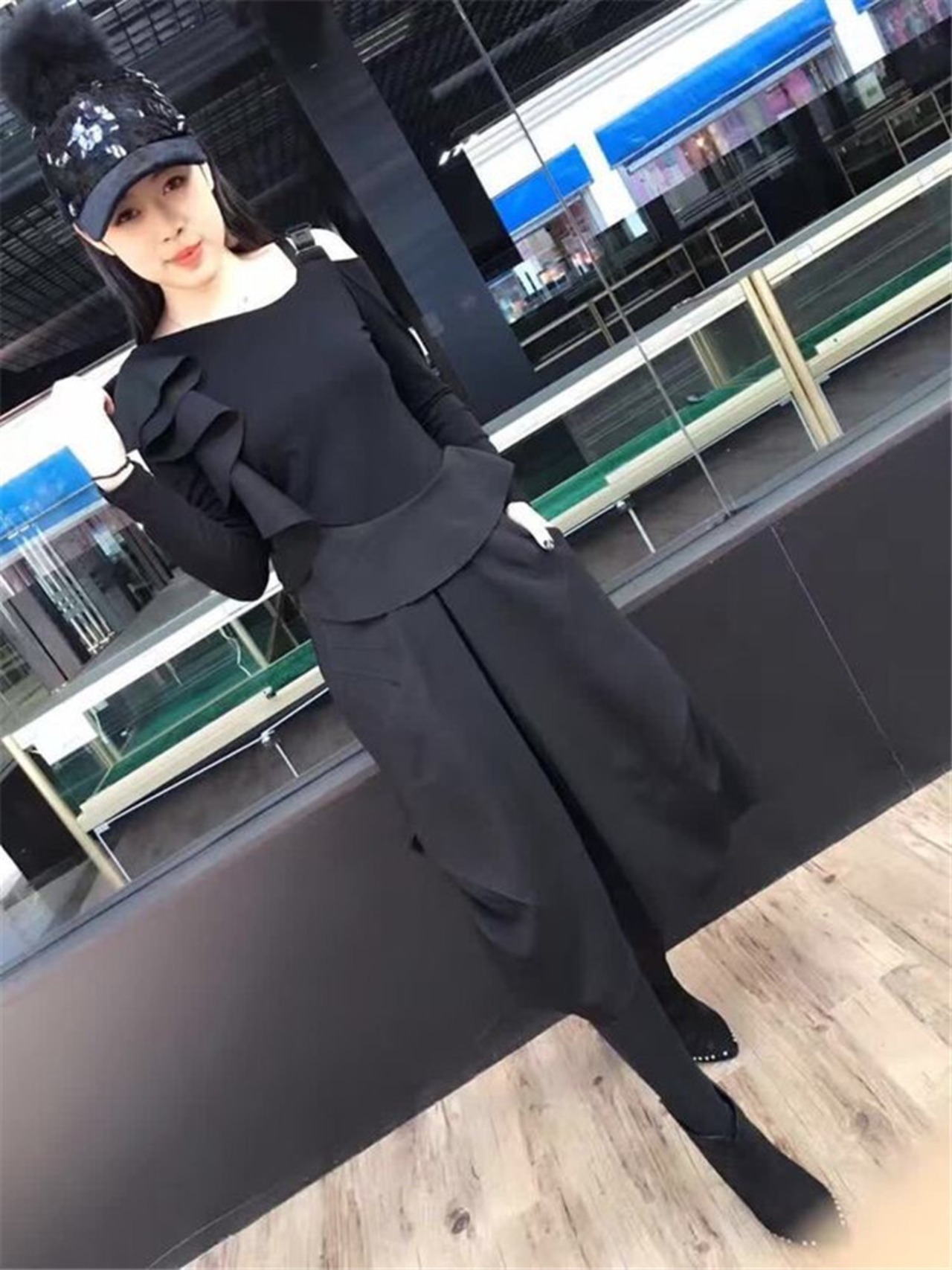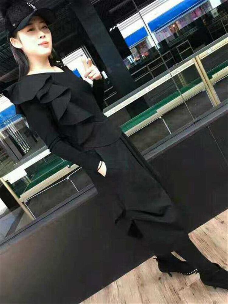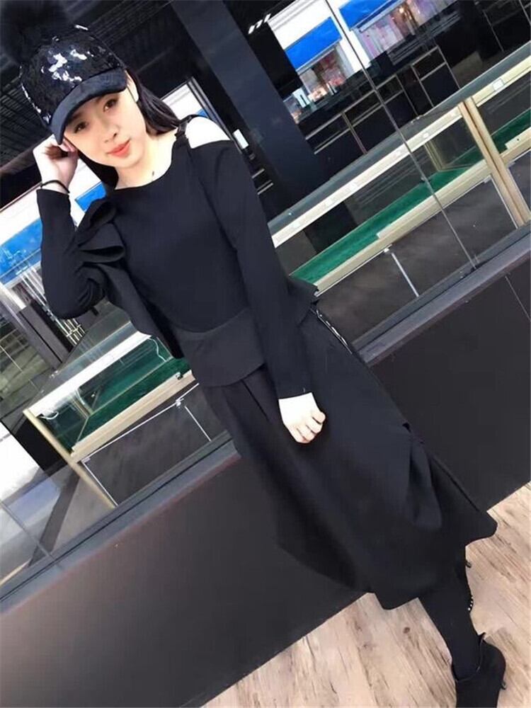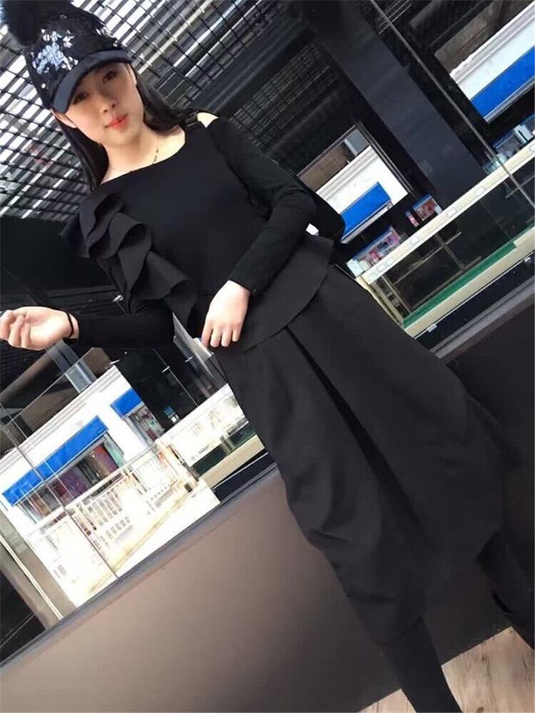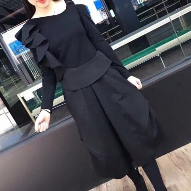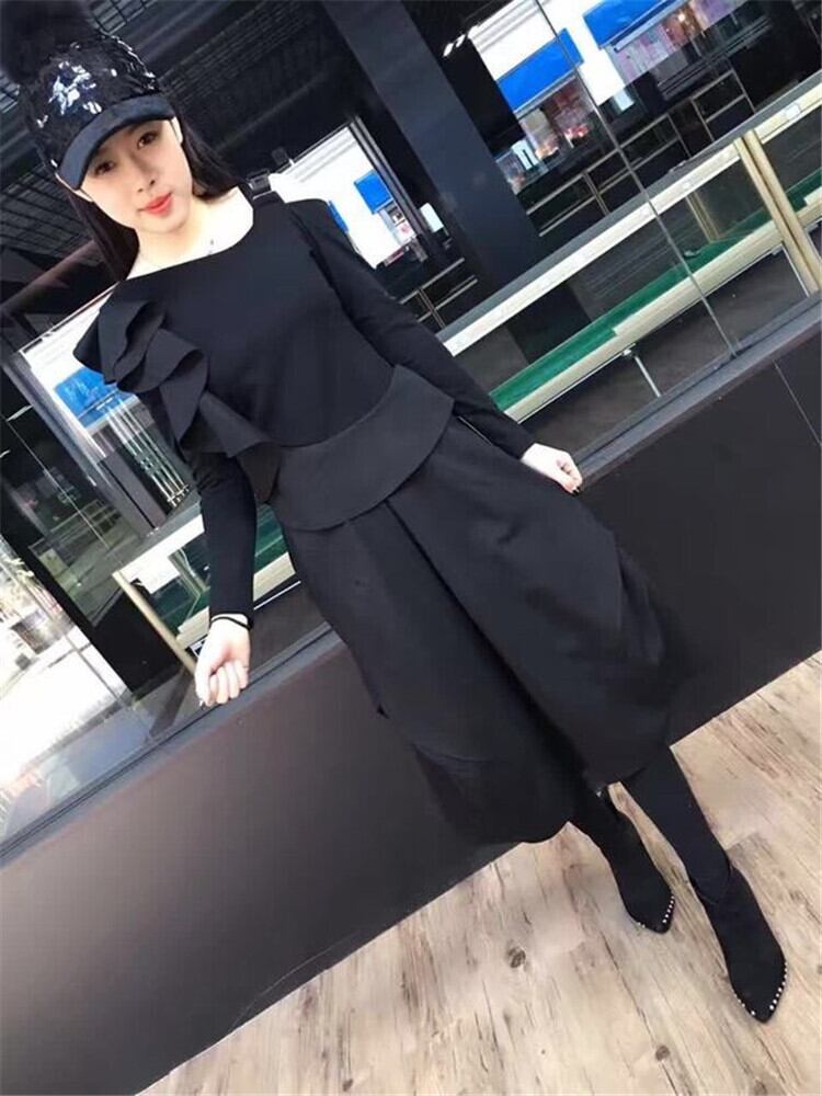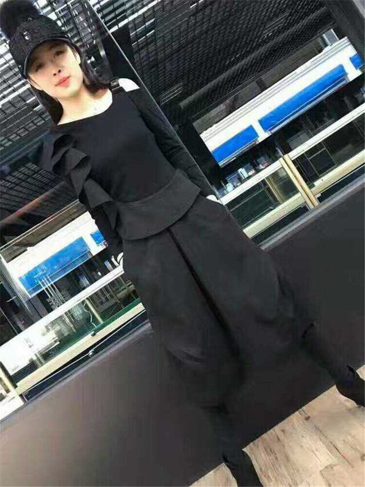 セットアップ ワンピース オールインワン モード フリル アシンメトリー トレンド ワントーンコーデ ブラックコーデ こなれ感 お出かけ カジュアル 秋冬