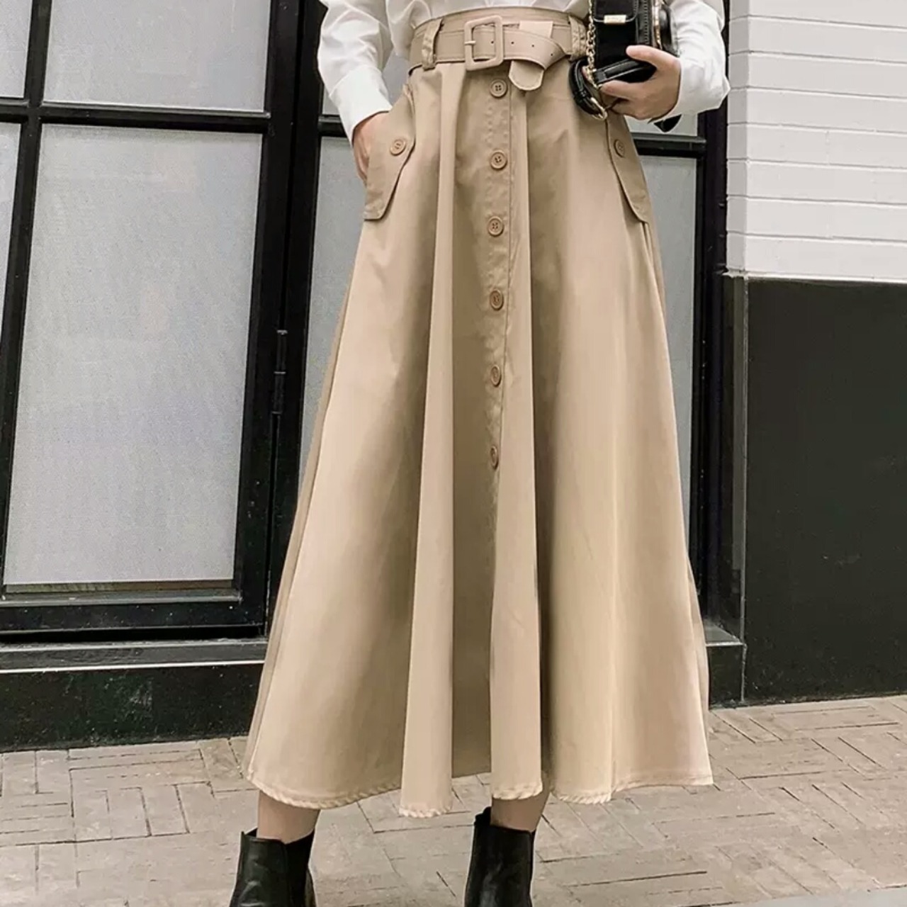 全2色 3種 スカート ミディ丈 ロング丈 ボタン お出かけ お買い物 デート 女子会 大人 カジュアル シンプル キレイめ 通勤 通学 学生