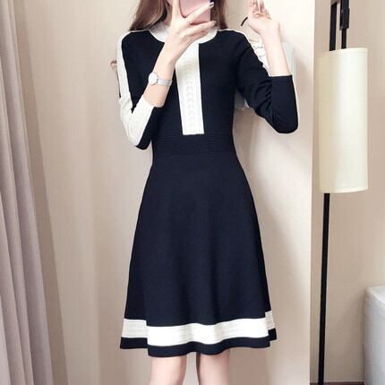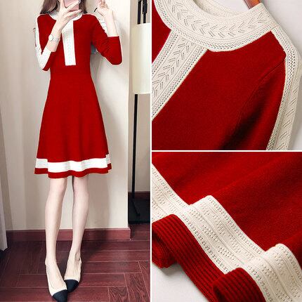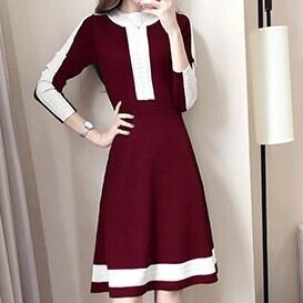 全4色 ワンピース 無地 シンプル ミドル丈 ラウンドネック エレガント きれいめ お呼ばれ パーティー お出かけ デート 秋冬