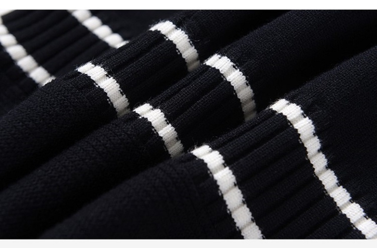袖口と裾のフリルがオシャレなニットのミニワンピースです。
