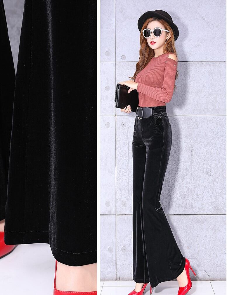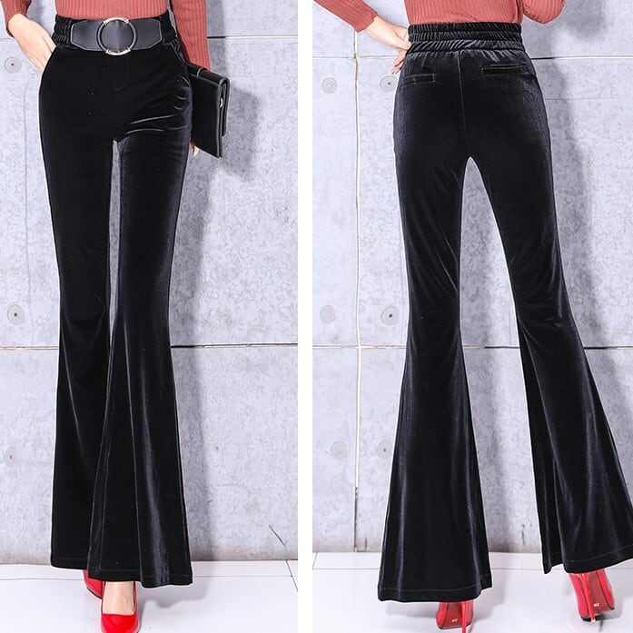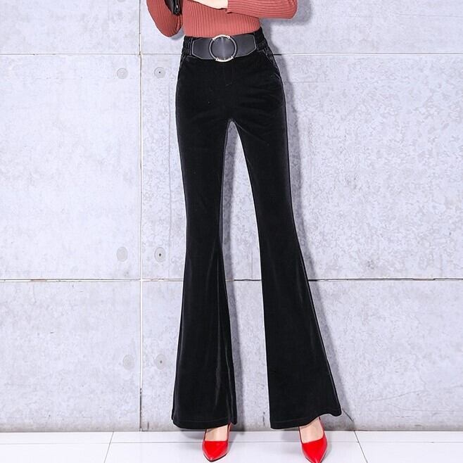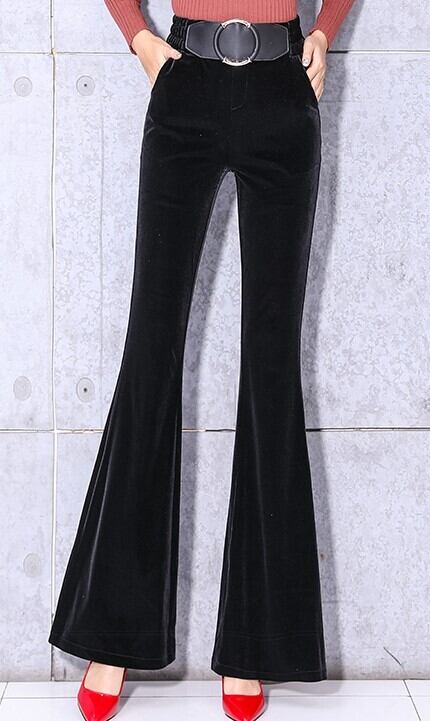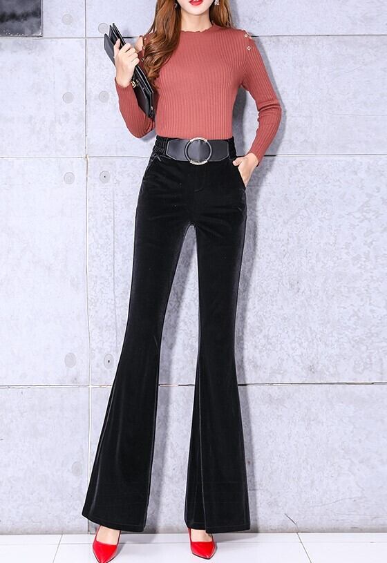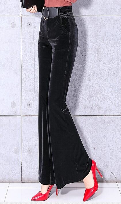 ベロアパンツ ワイドパンツ ベルボトム ストレート フレア ブラック 上品 エレガント ハイウエスト 秋 冬 大人カジュアル 韓国 オルチャン