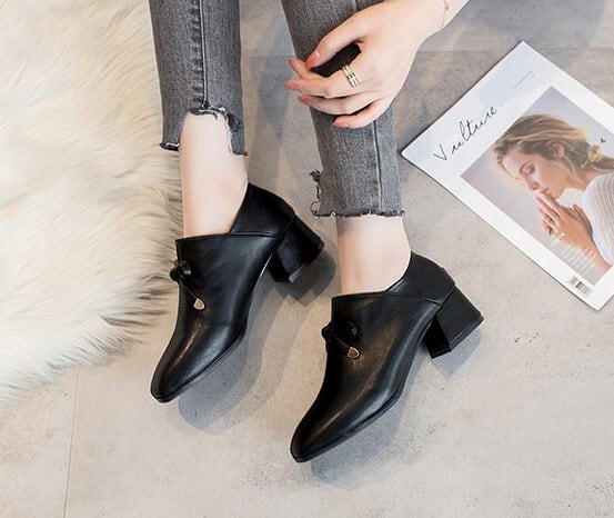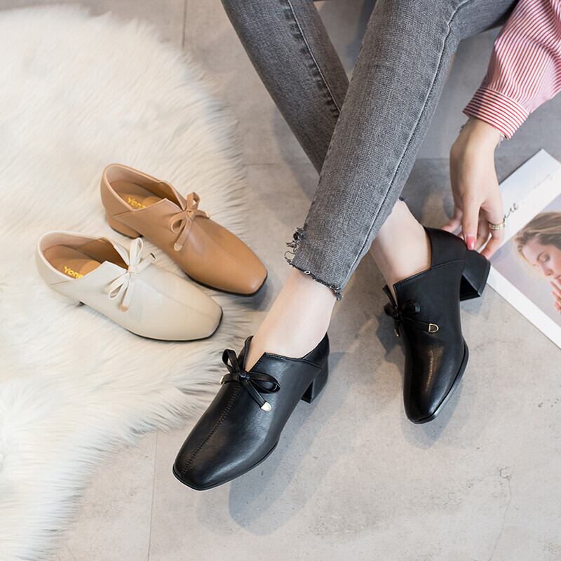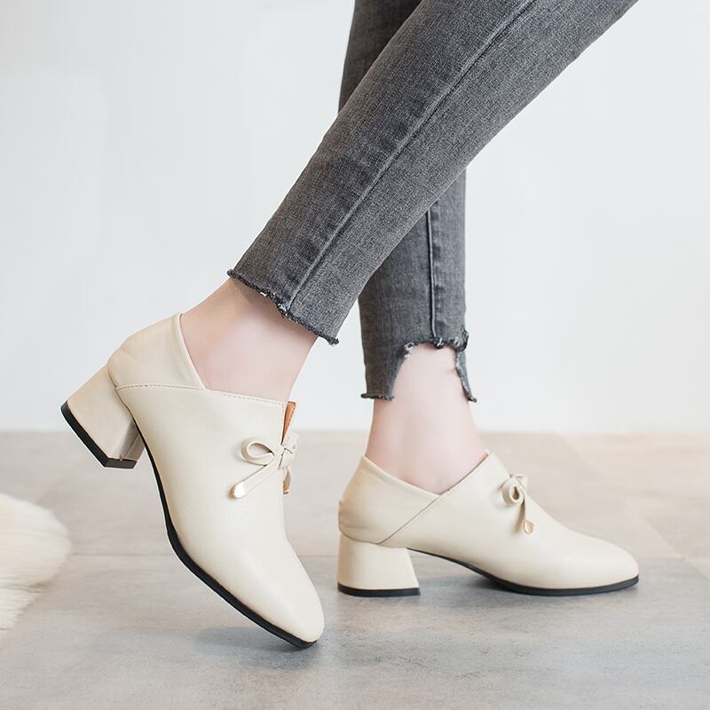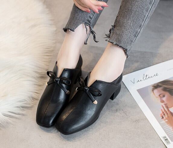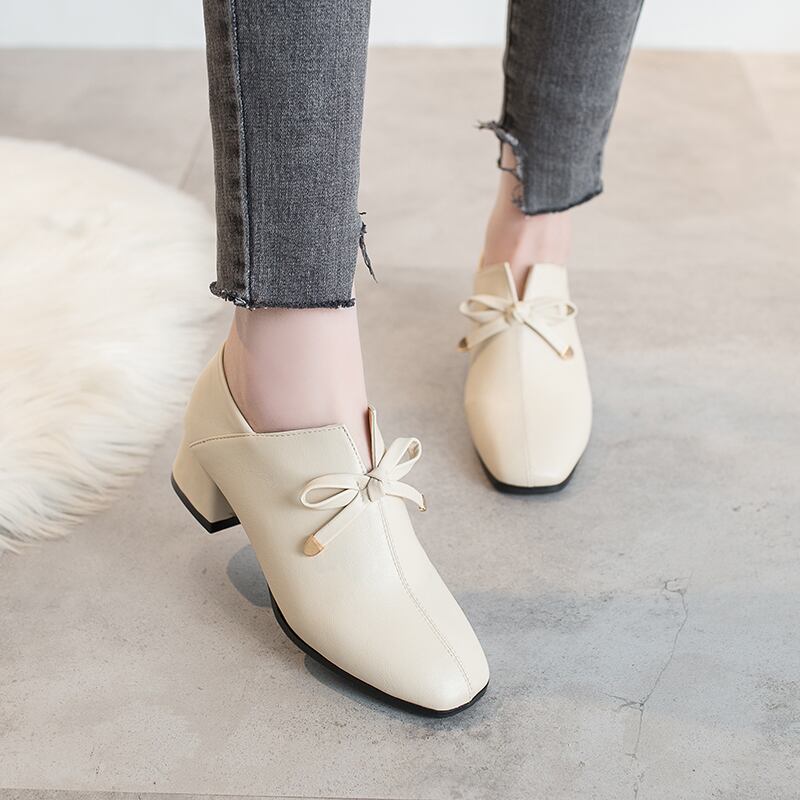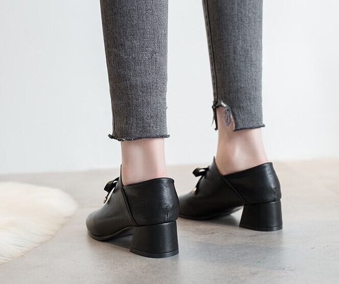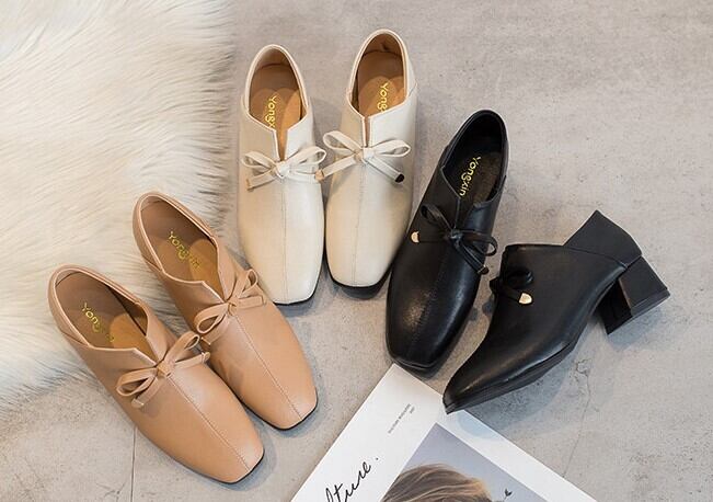 全3色 シングルシューズ 太ヒール 選べる裏起毛タイプ キャメル ホワイト ブラック 秋 冬 通勤 通学 学生 大人カジュアル ベーシック ナチュラル 韓国 オルチャン
