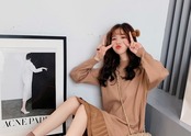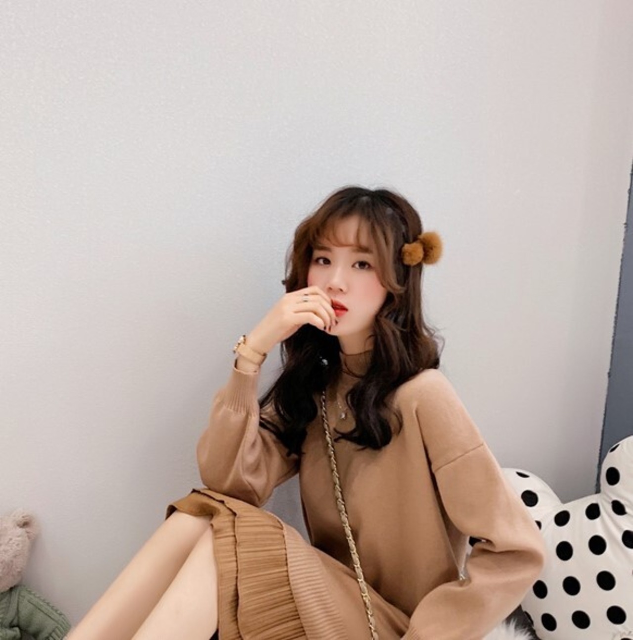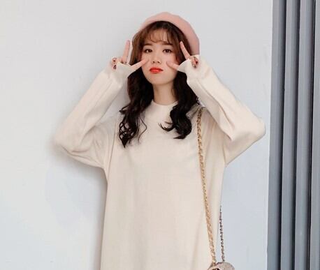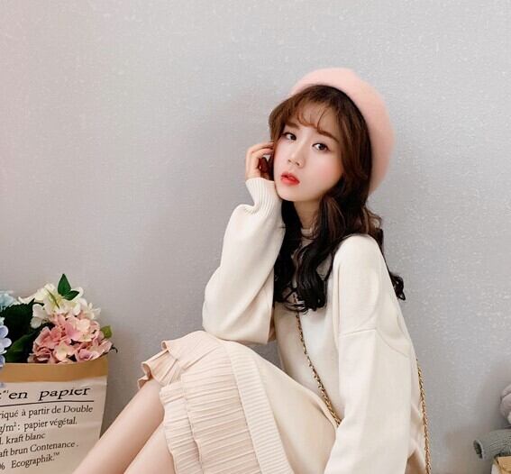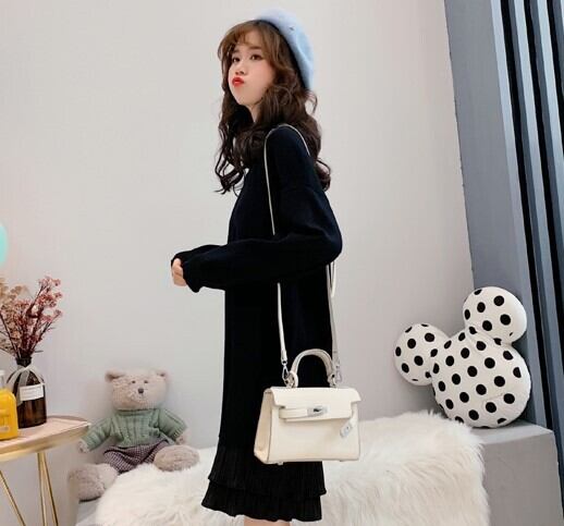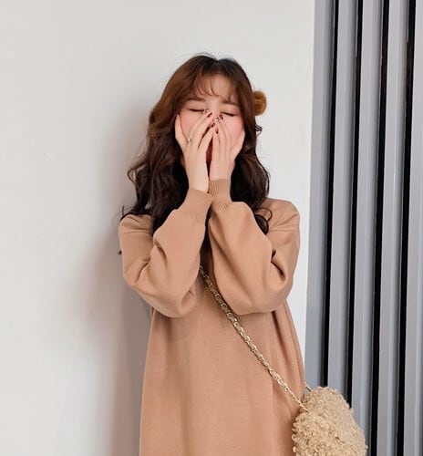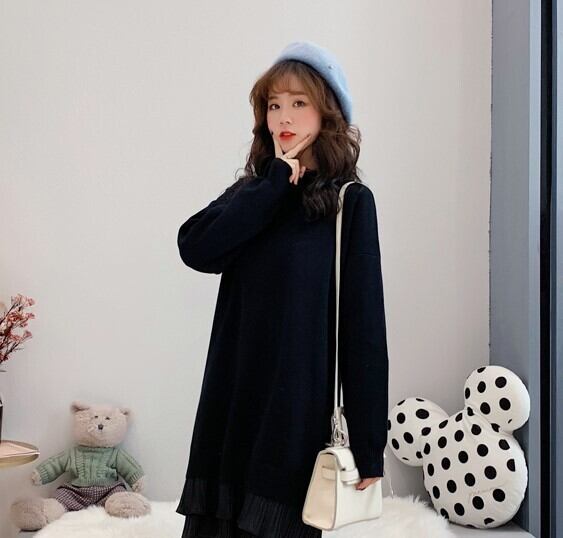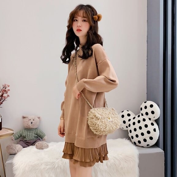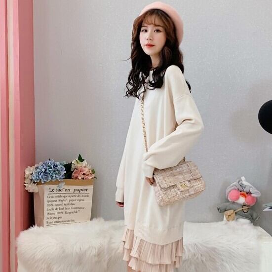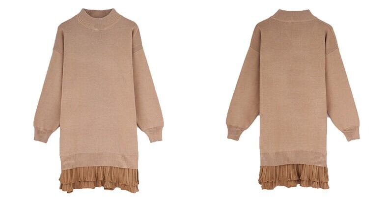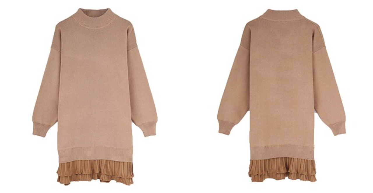 全3色 ニットワンピース ニットドレス ハイネック 長袖 ドロップショルダー ベージュ ホワイト ブラック ミニ丈 フリル 大人かわいい ガーリー 韓国 オルチャン