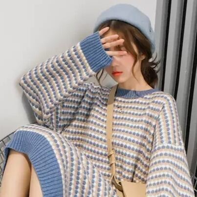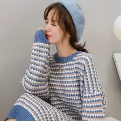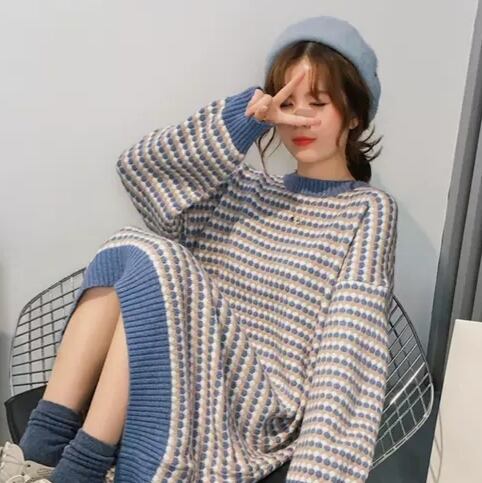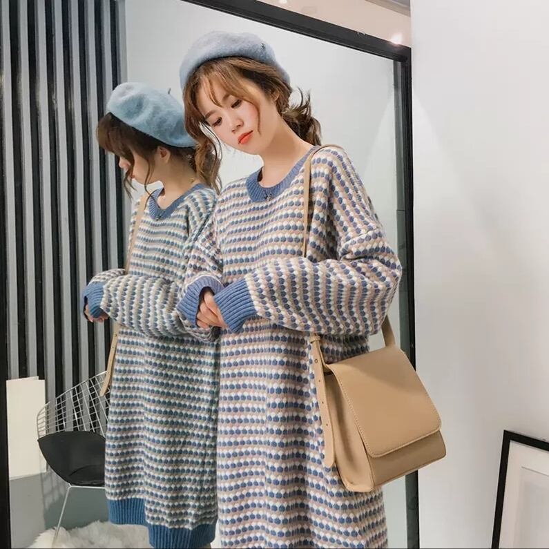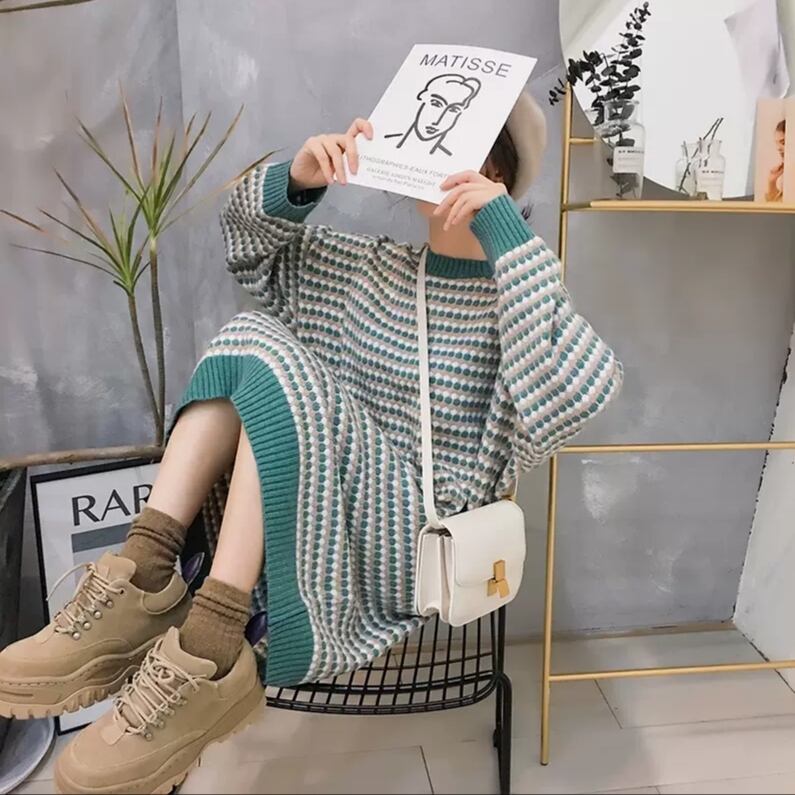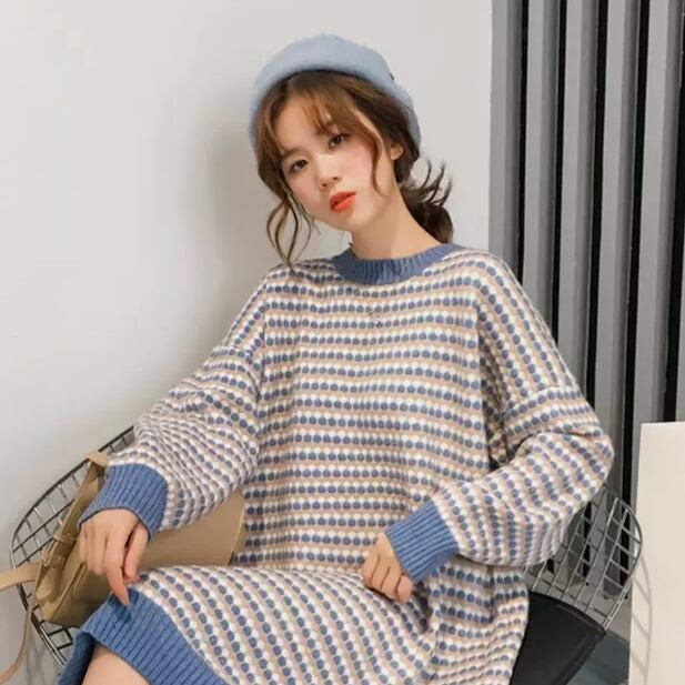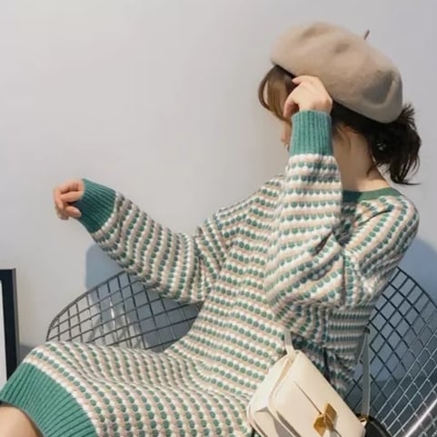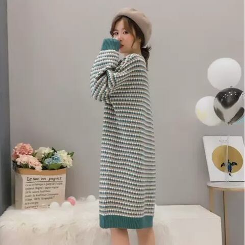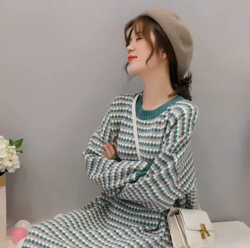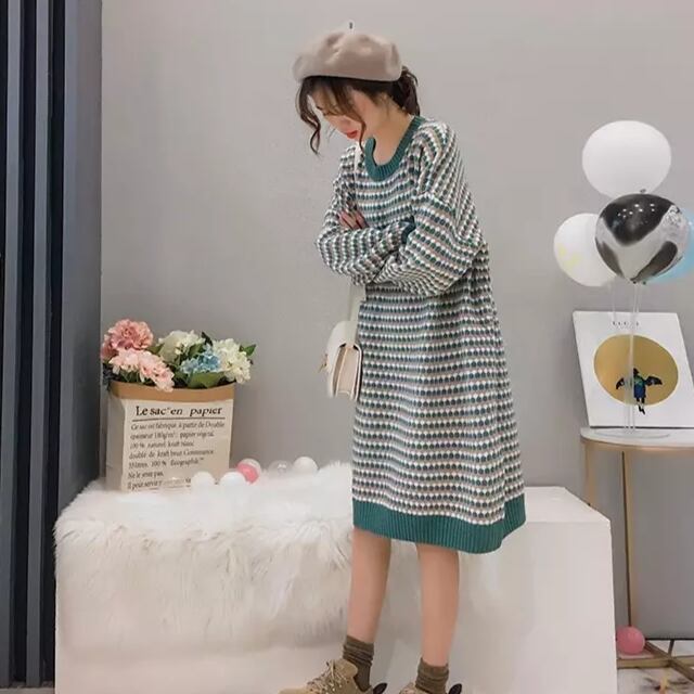 全2色 ニットワンピース ニット セーター シンプル ひざ丈 ボーダー ゆったり カジュアル こなれ感 大人可愛い お出かけ デート 秋冬