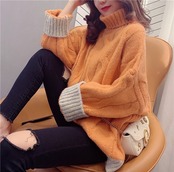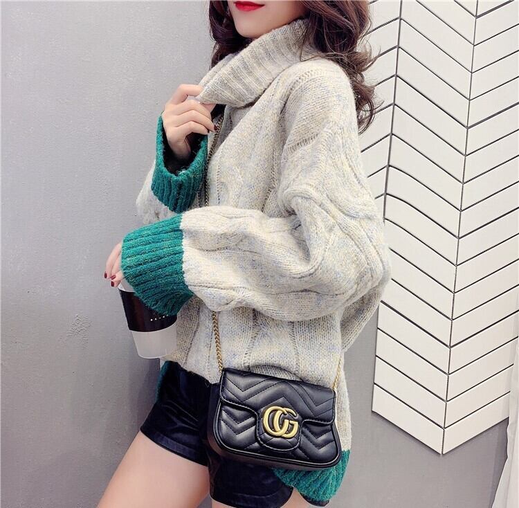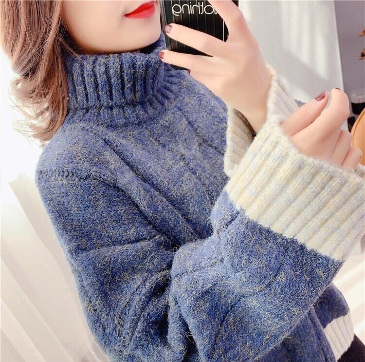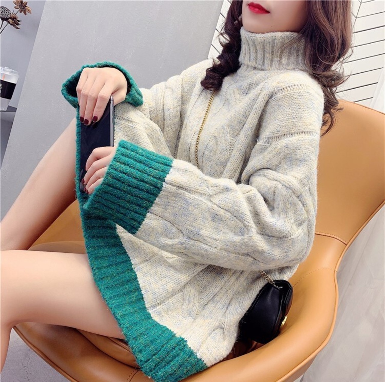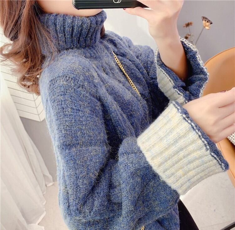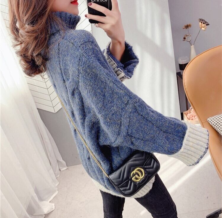 全4色 くすみカラー セーター ニット タートルネック 長袖 ドロップショルダー グレー グリーン ブルー オレンジ ミドル丈 秋 冬 大人カジュアル 韓国 オルチャン