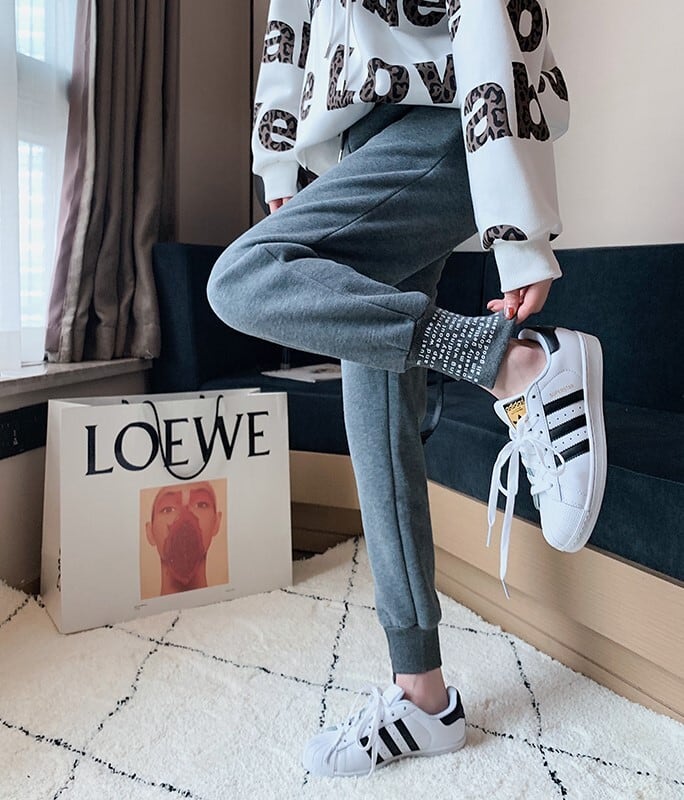 全2色 スウェットパンツ ストレッチパンツ ボトムス ブラック グレー 大人カジュアル スポーティ 秋 冬 通学 学生 休日コーデ リラックスウェア 韓国 オルチャン