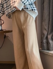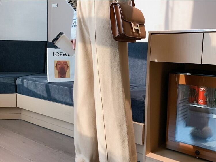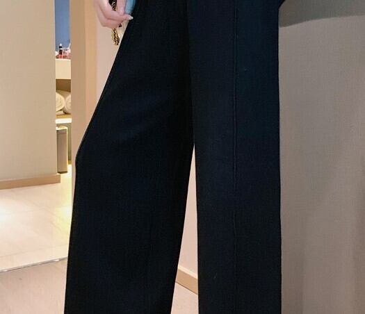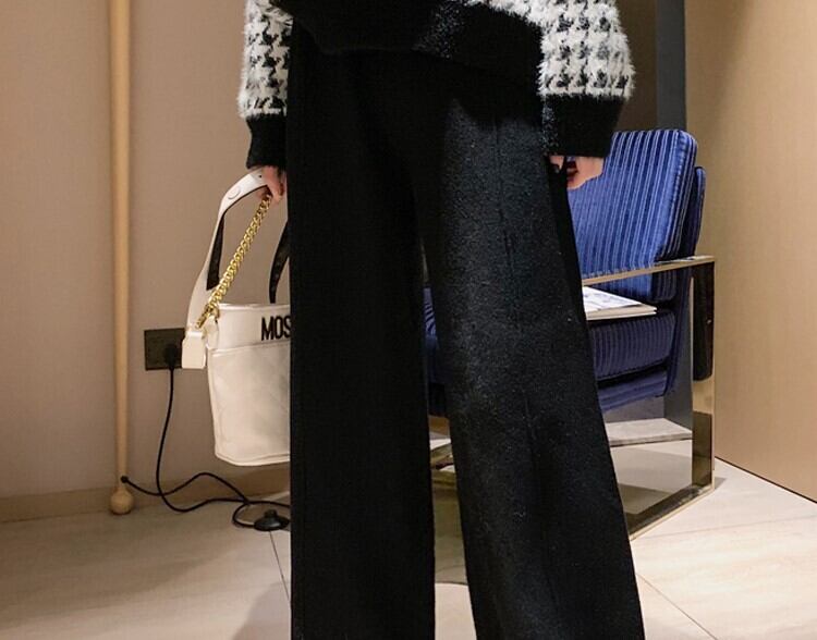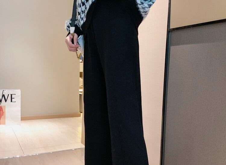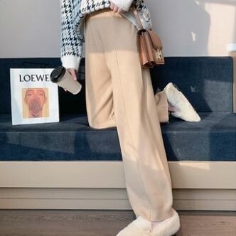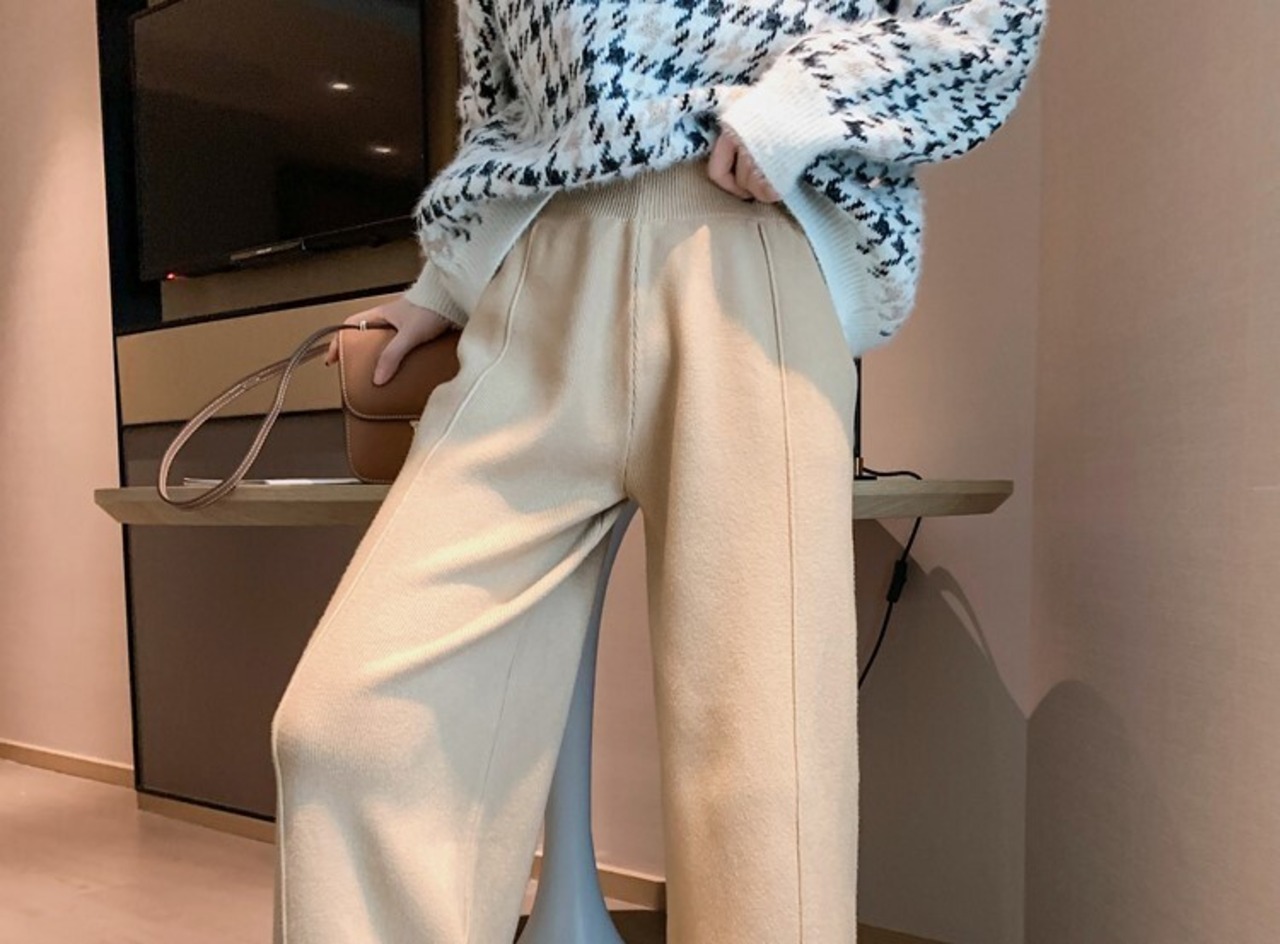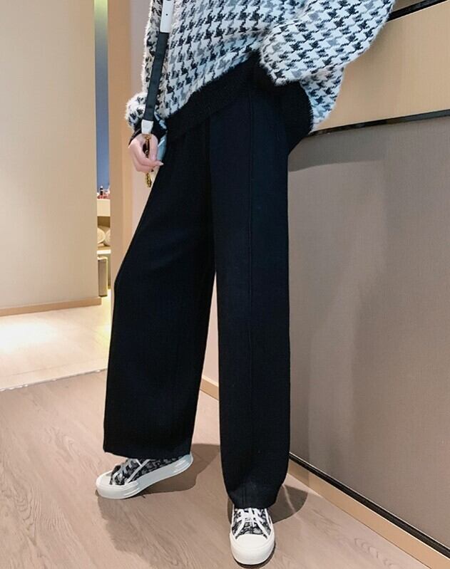 全2色 ニット ワイドパンツ ウエストゴム リラックスパンツ ベージュ ブラック ルーズ カジュアル スポーティ 韓国 オルチャン 秋 冬