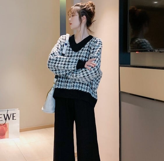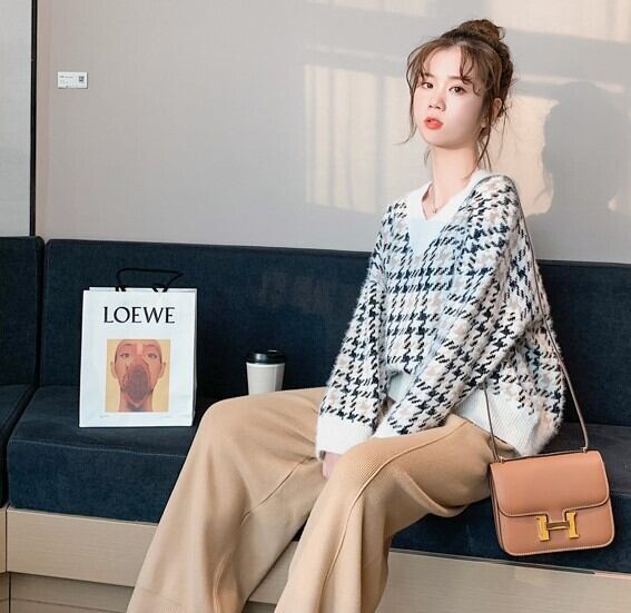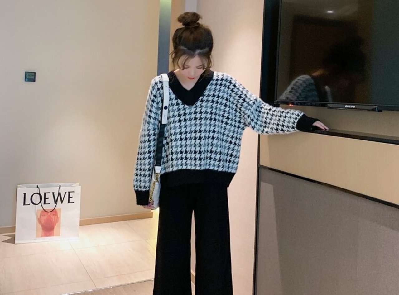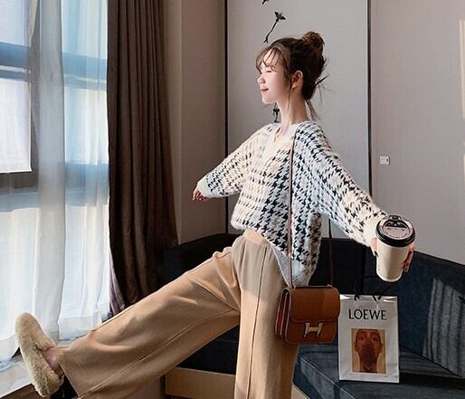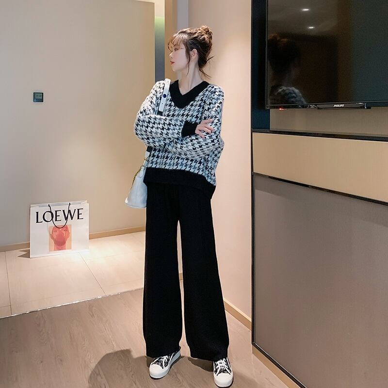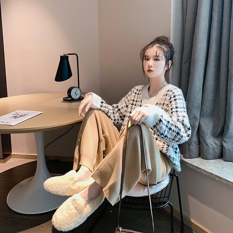 全2色 ニット ワイドパンツ ウエストゴム リラックスパンツ ベージュ ブラック ルーズ カジュアル スポーティ 韓国 オルチャン 秋 冬