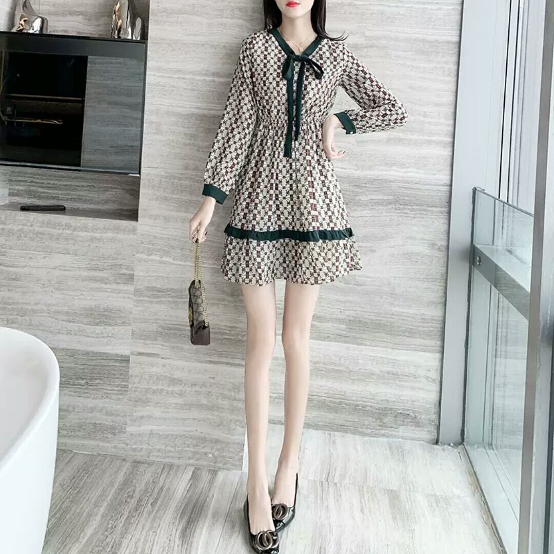 ショート丈 ミニ丈 ワンピース 柄 個性的 リボン お出かけ お買い物 デート 女子会 大人 カジュアル キレイめ シンプル 可愛い 秋冬 春