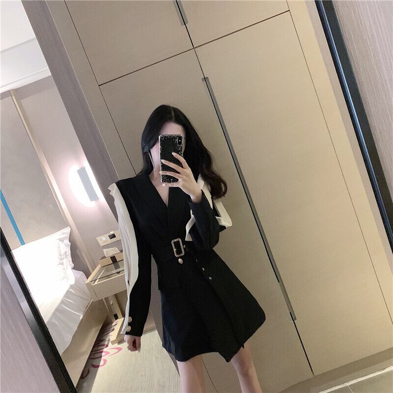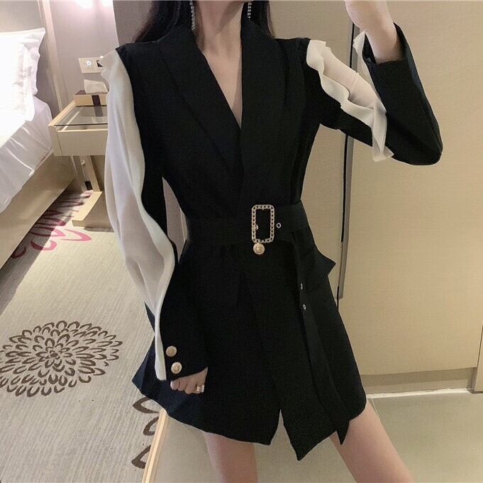 ワンピース ブラック ラップワンピ ラップ Vネック モノトーン 上品 お出かけ デート きれいめ 秋冬