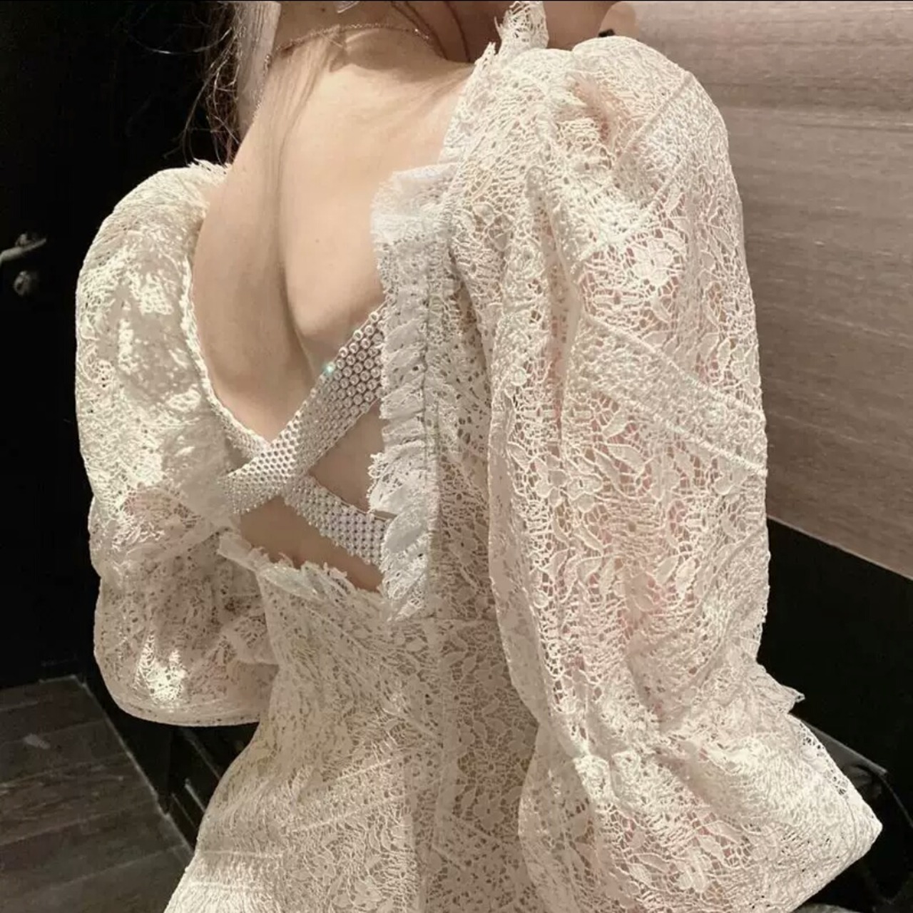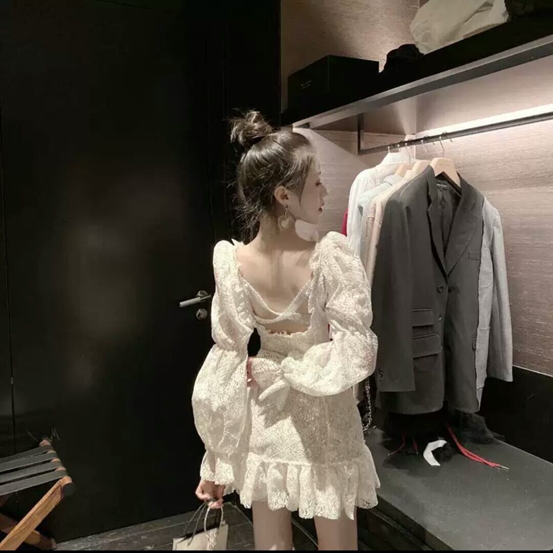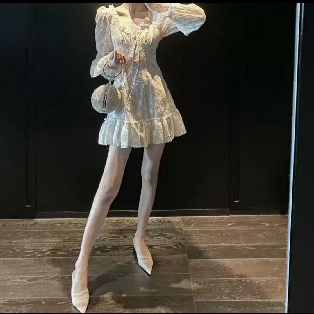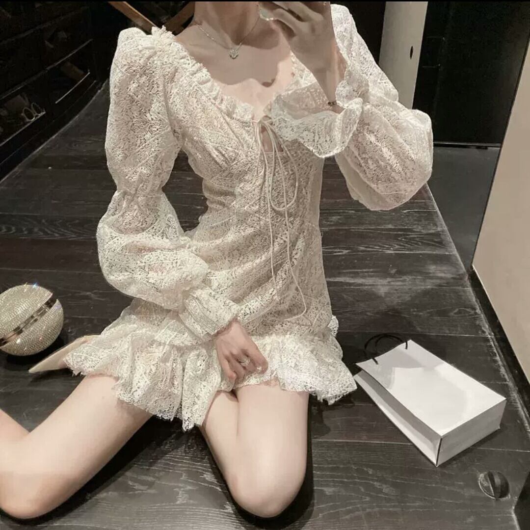 レースワンピース ショート丈 ミニ丈 可愛い 大人 シンプル キレイめ ふんわり お出かけ お買い物 デート 女子会 秋冬 春