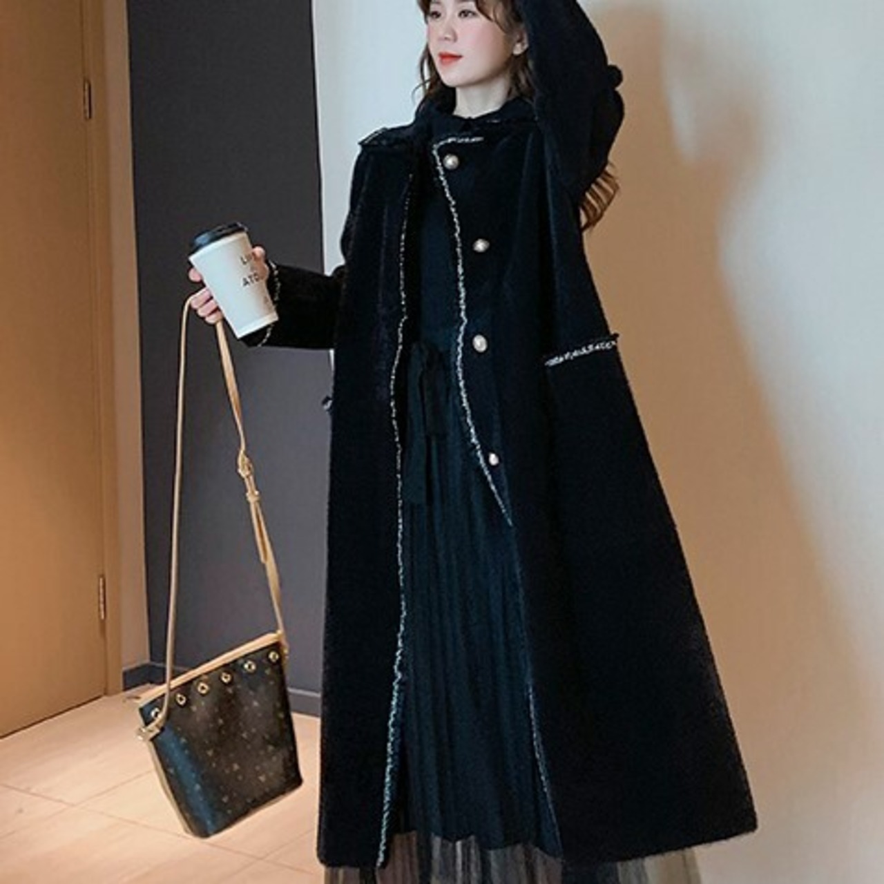 全2色 アウター コート ロング フロントボタン シングル チェスター 大人可愛い 通勤 オフィス お出かけ デート 秋冬