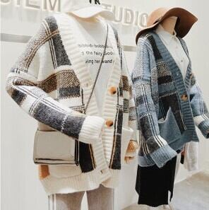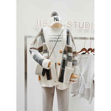 全2色 チェック柄カーディガン