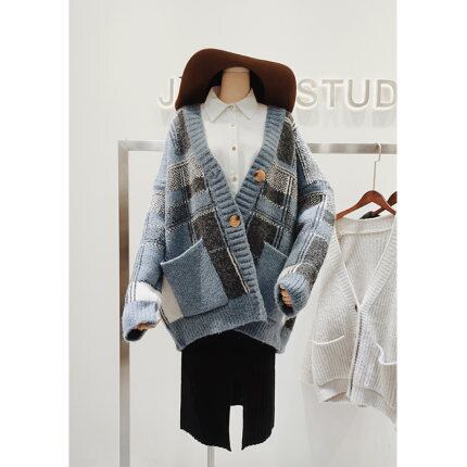 全2色 トップス カーデ カーディガン チェック 格子縞 ゆったり こなれ感 カジュアル お出かけ デート 女子会 秋冬