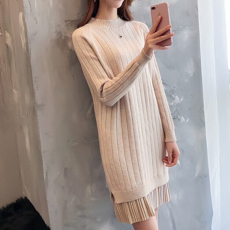 全6色 ワンピース 起毛 ベルベット プリーツ セータードレス ハーフハイカラー きれいめ 通勤 オフィス お出かけ デート 女子会 秋冬